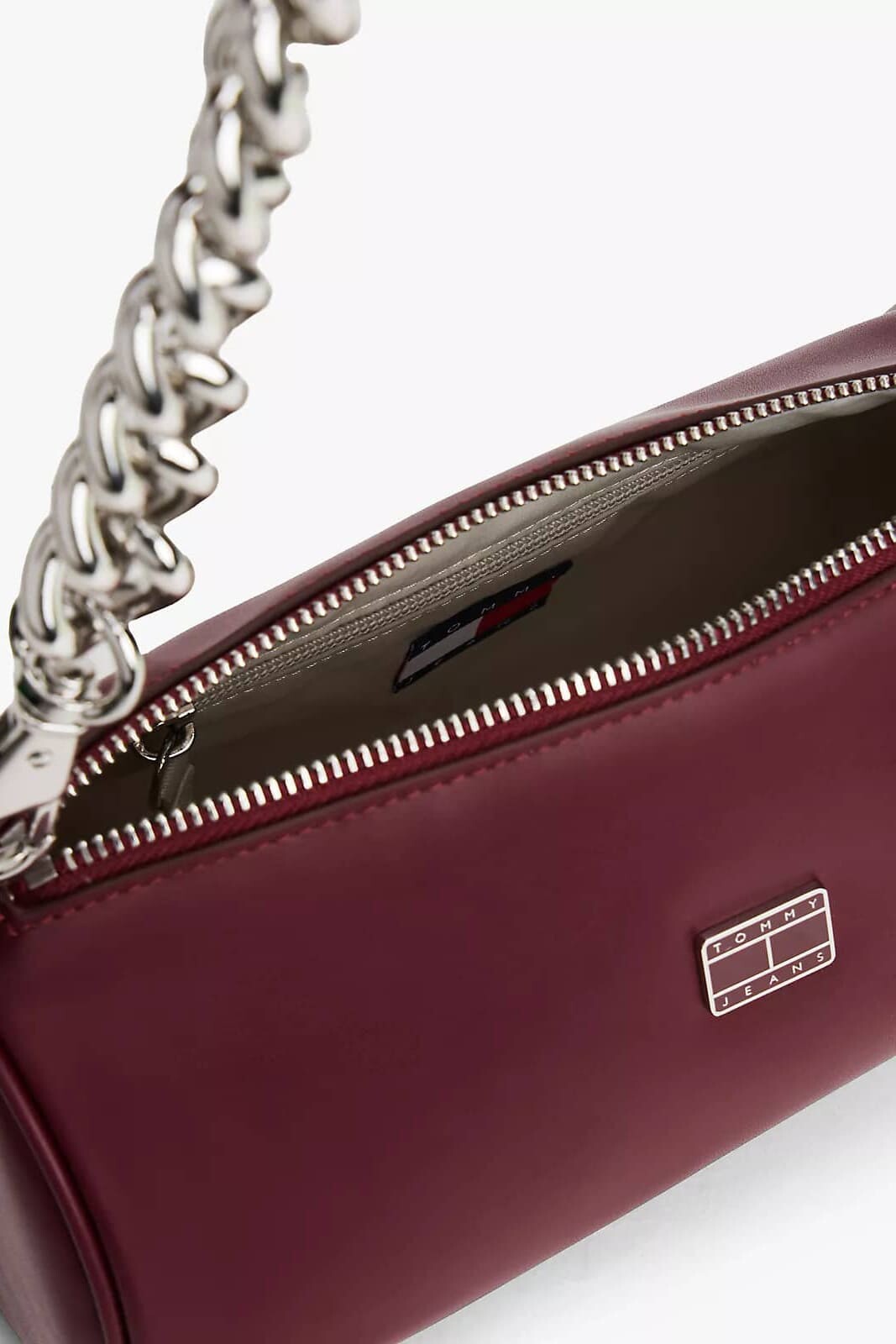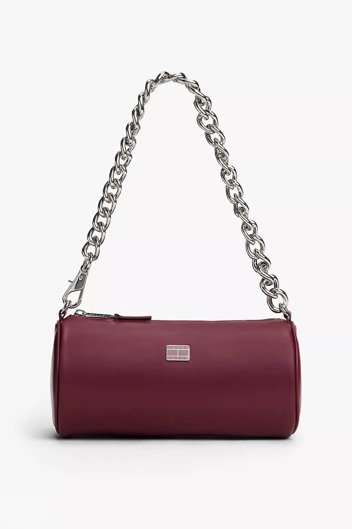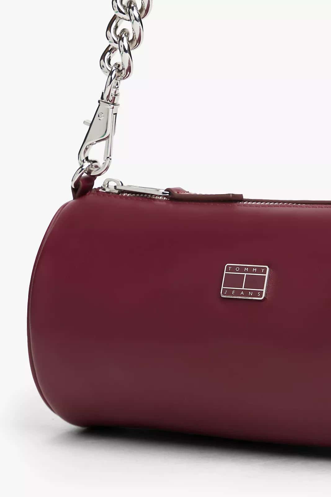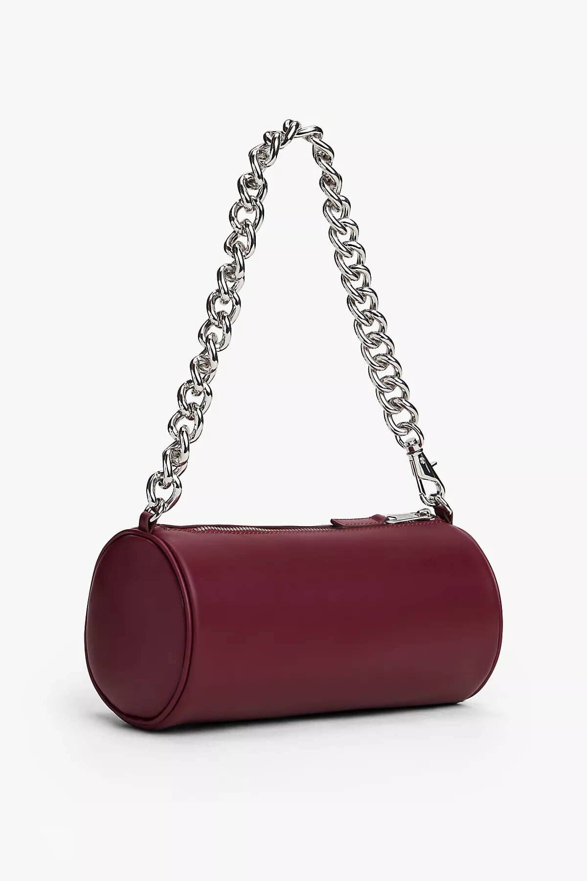 Her kombine modern ve iddialı bir dokunuş katacak bu çanta, göz alıcı tasarımıyla öne çıkıyor. Pürüzsüz poliüretan malzemeden üretilen şık silindir formu, parlak ve kalın metal zincir omuz askısıyla tamamlanarak cesur bir stil ifadesi sunar. Fermuarlı ana bölmesi temel eşyalarınız için güvenli bir saklama alanı sağlarken, ön yüzündeki metal logo plakası tasarıma zarif bir son dokunuş yapar. Hem gündüz hem de gece stilleriniz için mükemmel bir aksesuardır.