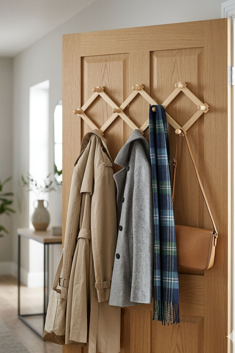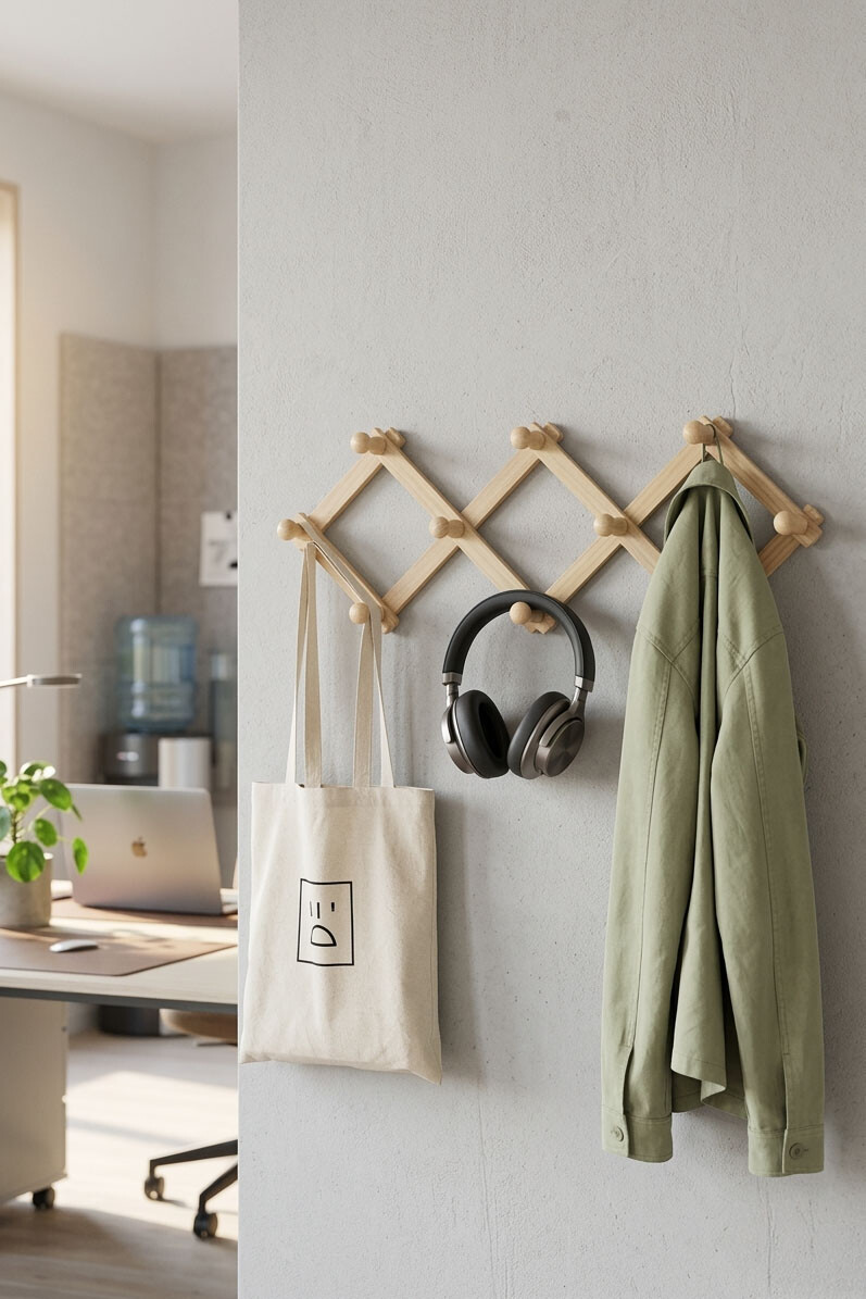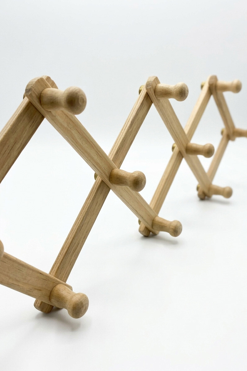 Doğal bambu malzemeden üretilen akordiyon duvar askılığı, mont, çanta, kulaklık ve aksesuarlarınızı düzenli şekilde asmanızı sağlar. Katlanabilir yapısı sayesinde alan tasarrufu sağlar ve evinize dekoratif bir görünüm kazandırır.
