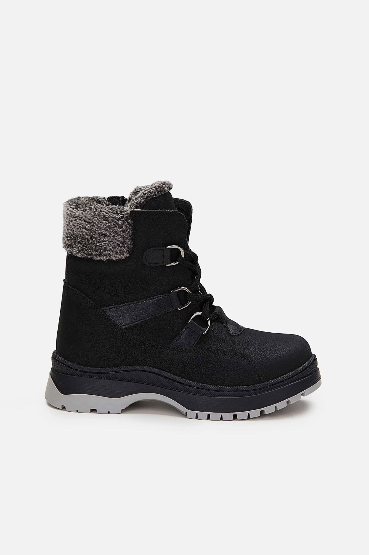 Kış aylarında miniklerin ayaklarını sıcacık tutarken şıklıklarından ödün vermemelerini sağlayan Alexis patik bot, siyahın zarafetini fonksiyonel detaylarla birleştiriyor. Süet görünümlü mat dış yüzeyi ve bilek kısmını çevreleyen kırçıllı (siyah-gri) yapay kürk manşeti, soğuk havaya karşı şık bir kalkan oluşturur. Ön kısımdaki metal halkalı bağcık sistemi klasik bir bot görünümü sunarken, iç yanda bulunan fermuar sayesinde çocuklar botlarını yardım almadan pratik bir şekilde giyip çıkarabilir. İki renkli (siyah-gri) kalın taban yapısı, zeminden gelen soğuğu engeller ve tırtıklı yüzeyiyle karlı zeminlerde güvenli adımlar atmayı destekler.