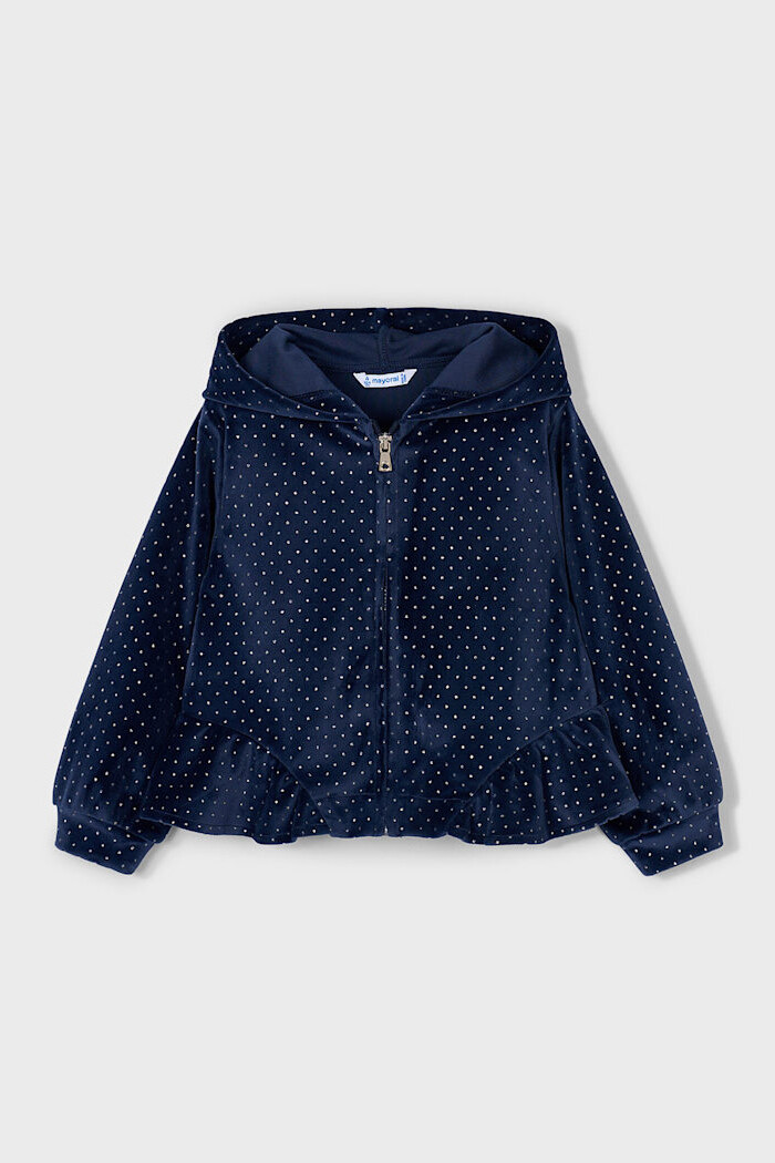 Balerin zarafetini sportif konforla birleştiren bu üç parçalı takım, çocukların gardırobuna ışıltı katıyor. Set; üzerinde tül detaylı sevimli bale patiği baskısı bulunan %100 pamuklu bir tişört, tamamı pırıltılı puantiyelerle süslenmiş kapüşonlu ve fermuarlı kadife bir sweatshirt ve aynı kumaştan rahat bir jogger eşofman alttan oluşur. Yumuşacık kadife dokusu ve esnek yapısı, gün boyu konforlu bir kullanım sunar. İster bir arada şık bir takım olarak, ister ayrı ayrı farklı parçalarla kombinleyerek çocuğunuz için sayısız stil yaratabilirsiniz.