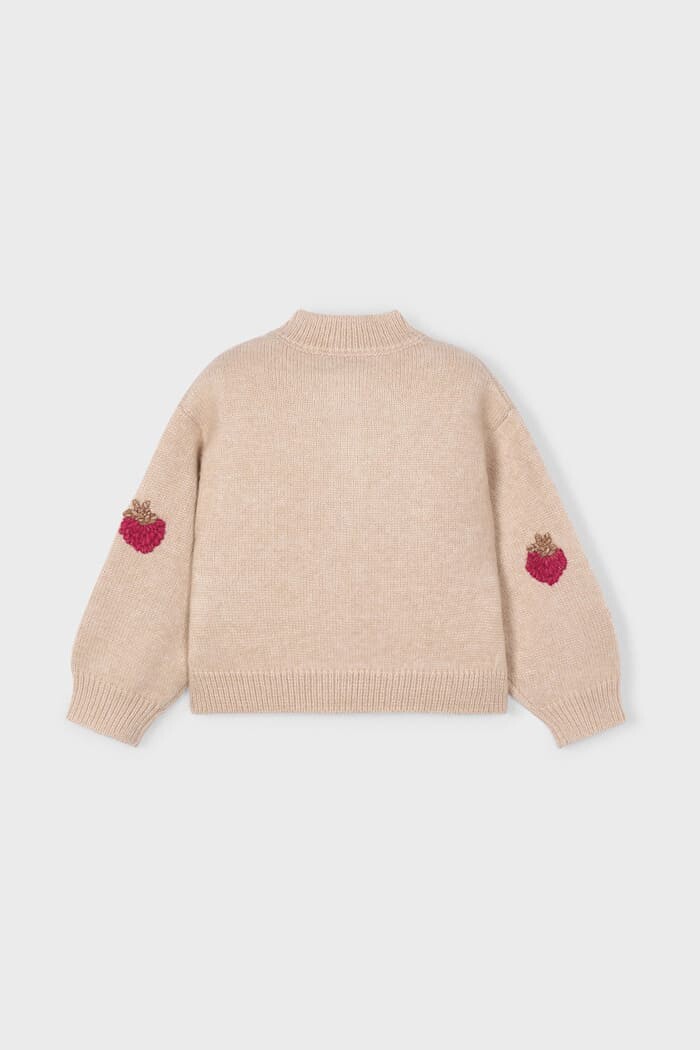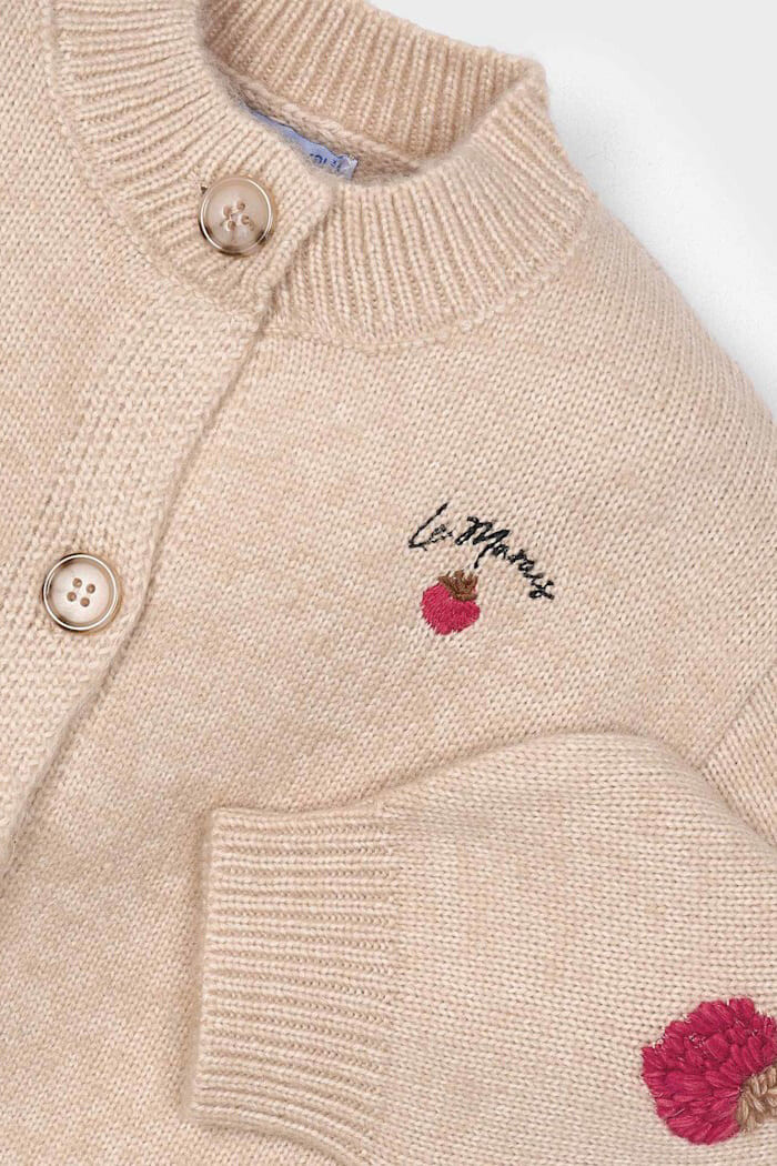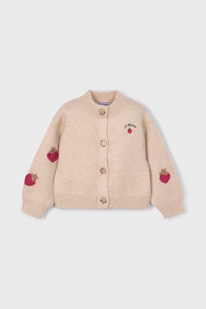 Sevimli tasarımı ve konforlu yapısıyla bu hırka, çocukların gardırobuna neşeli bir dokunuş katıyor. Yumuşak ve sıcak tutan triko kumaşı, serin günlerde konforlu bir kullanım sunar. Hırkanın göğüs ve kollarını süsleyen sevimli çilek nakışları, tasarıma eğlenceli ve renkli bir hava katıyor. Rahat kesimi ve hacimli balon kollarıyla hem şık hem de son derece rahattır. Elbiseler, bluzlar veya tişörtler üzerine giymek için ideal olan bu çok yönlü parça, her kombine tatlı bir dokunuş ekleyecek.