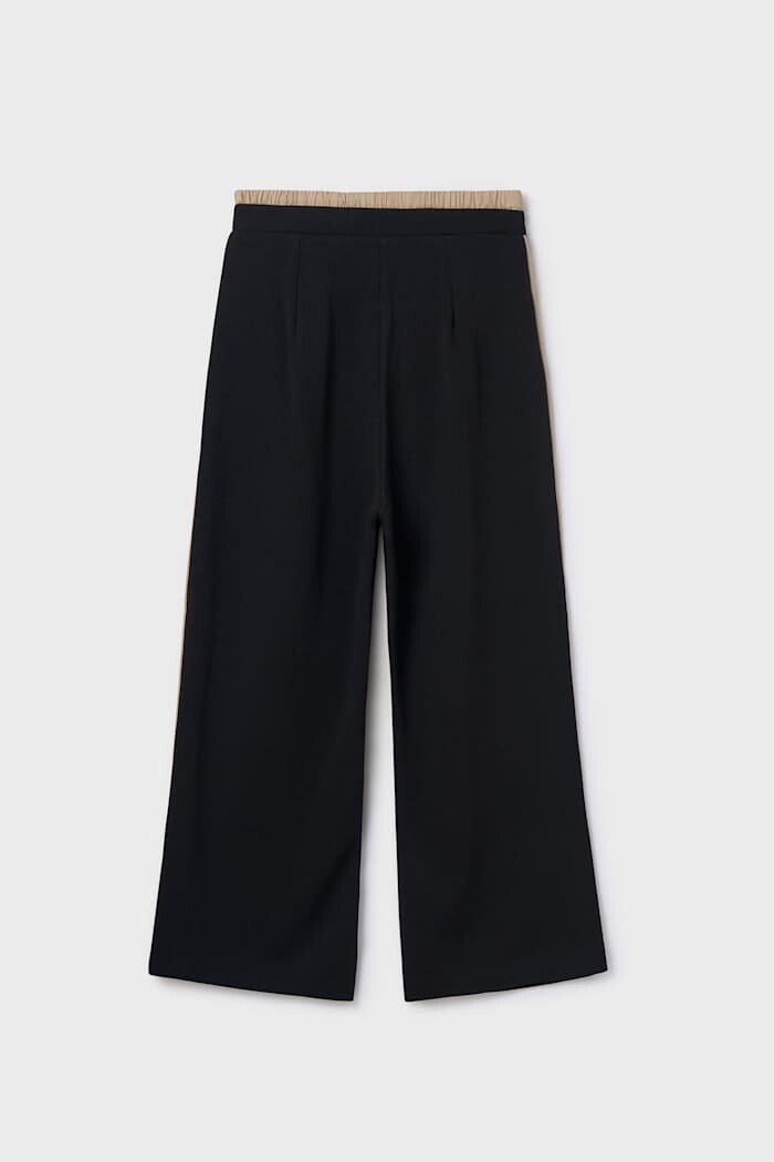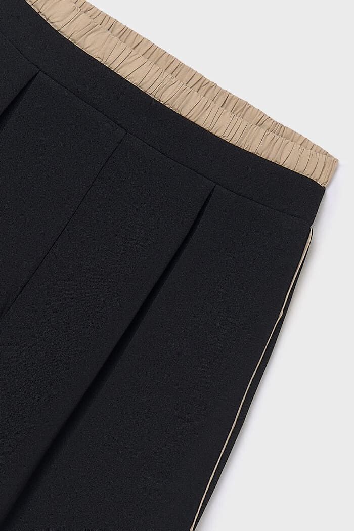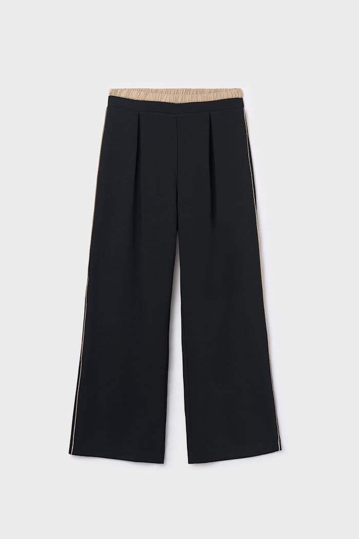 Sportif detayları şık bir silüetle birleştiren bu pantolon, çocukların gardırobuna modern ve konforlu bir dokunuş katıyor. Dökümlü ve esnek kumaşı, gün boyu rahat hareket imkanı sunar. Tasarımın en dikkat çekici unsuru olan kontrast renkli çift katlı bel detayı, pantolona özgün bir hava katarken, yanlardaki ince şeritler bacak boyunu daha uzun gösterir. Geniş paça kesimi ile son derece trend bir görünüm sunan bu parça, sade bir tişört veya şık bir bluz ile kolayca kombinlenebilir.
