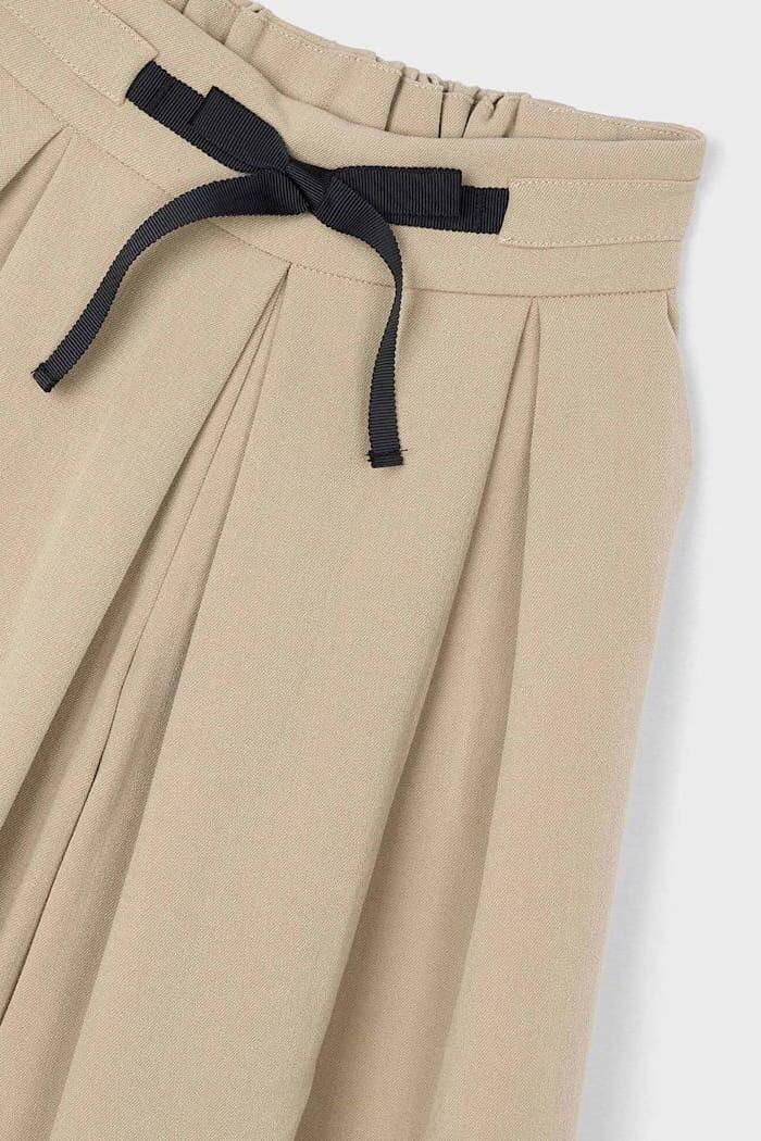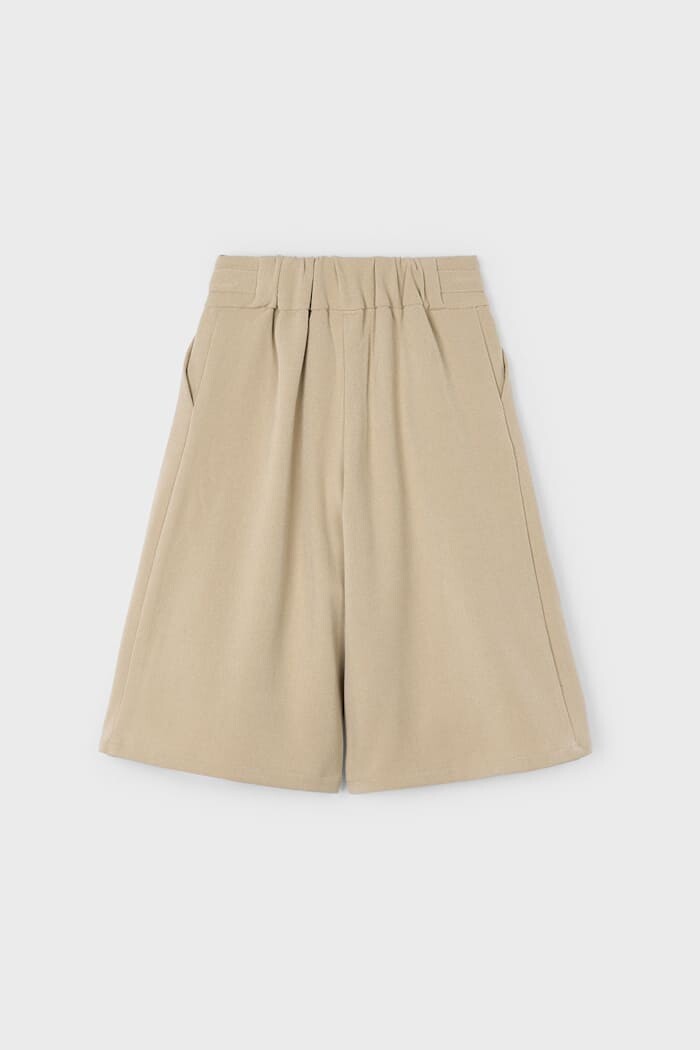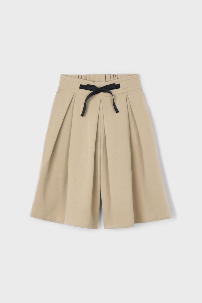 Eteğin şıklığını ve şortun rahatlığını bir araya getiren bu özel tasarım, miniklerin gardırobu için hem pratik hem de stil sahibi bir seçenektir. Geniş paçalı ve önü pileli kesimi sayesinde modern bir etek görünümü sunarken, çocukların oyun oynarken özgürce hareket etmesine olanak tanır. Bel kısmındaki kontrast renkli siyah fiyonk detayı, tasarıma zarif ve sevimli bir dokunuş katıyor. Tamamen lastikli bel yapısı, gün boyu konfor sunarken kolayca giyilip çıkarılmasını sağlar. Bluzlar ve sandaletlerle şık bir kombin veya tişörtler ve spor ayakkabılarla rahat bir stil yaratmak için mükemmel bir parçadır.