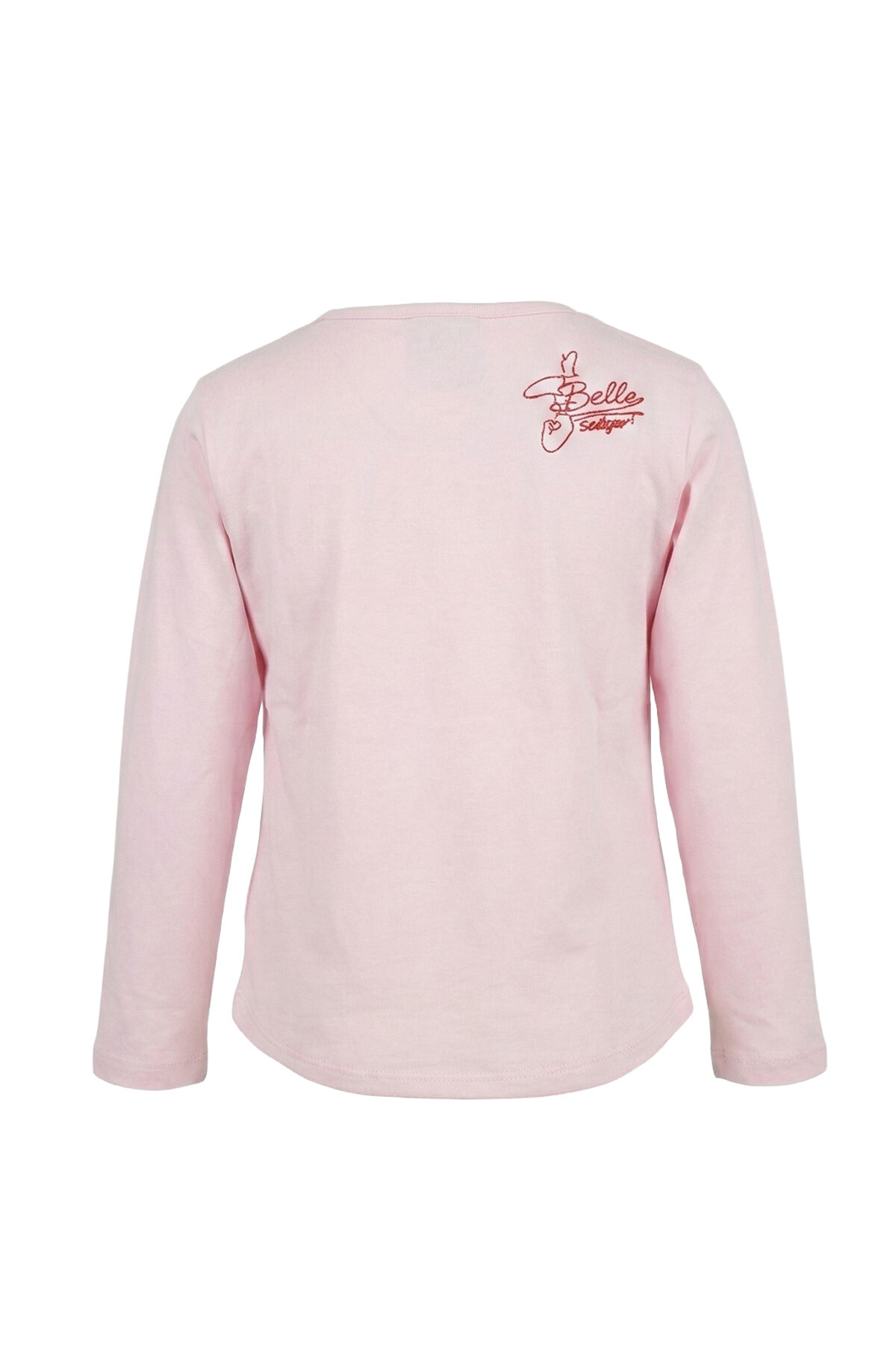 Sevilen prenses Belle'in zarafetini miniklerin gardırobuna taşıyan bu pembe t-shirt, masalsı tasarımıyla dikkat çekiyor. Ön yüzeyde yer alan büyük prenses baskısı, "It's good to be different" (Farklı olmak güzeldir) sloganıyla tamamlanarak hem şık hem de ilham verici bir duruş sergiliyor. Yumuşak pamuklu dokusu ve rahat kesimi sayesinde gün boyu konfor sunan model, bisiklet yaka ve uzun kollu tasarımıyla mevsim geçişleri için idealdir. Arka sağ omuz kısmındaki simli ve işlemeli "Belle" yazısı ile gül detayı, tasarıma arkadan bakıldığında da zarif bir sürpriz katıyor.