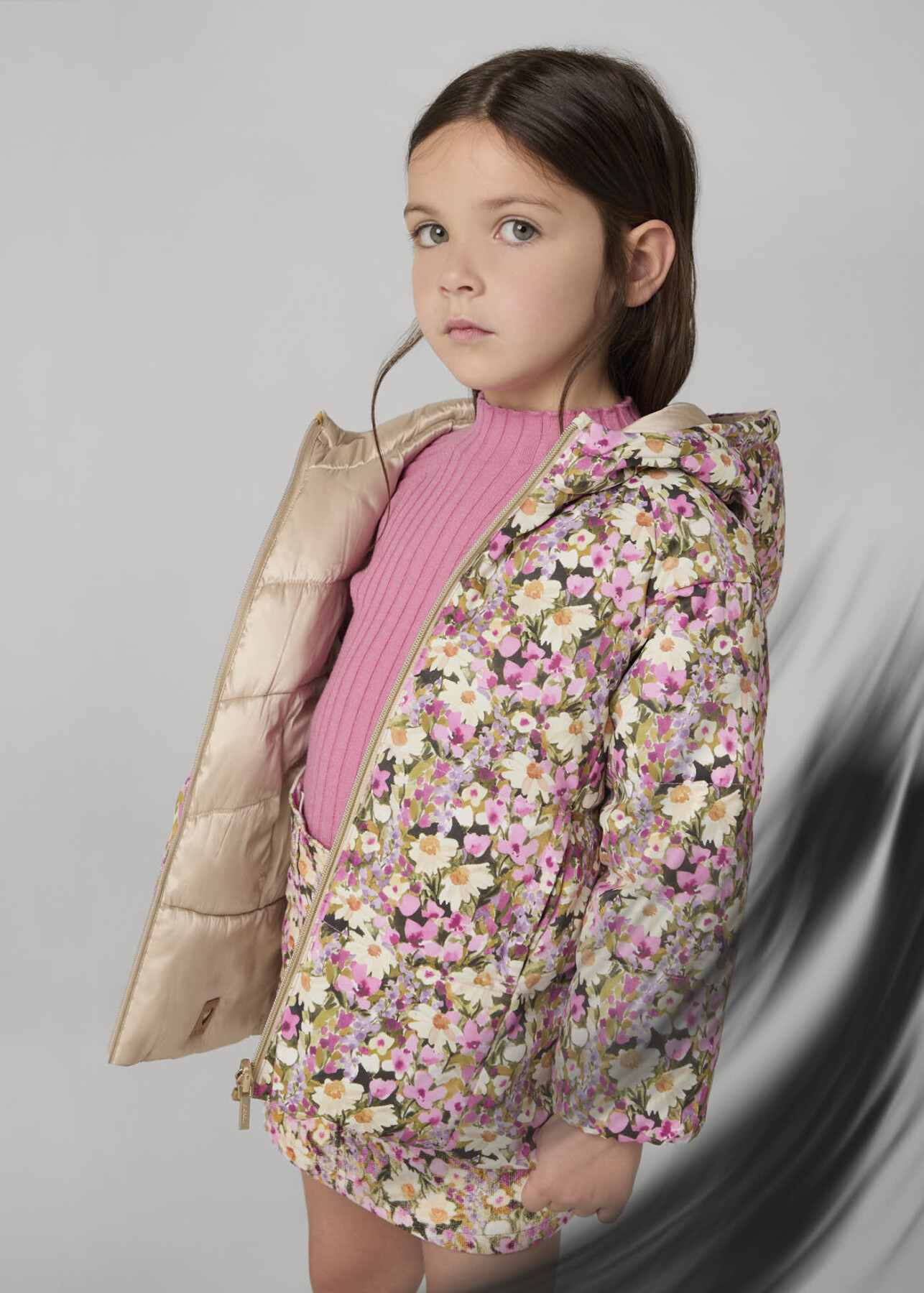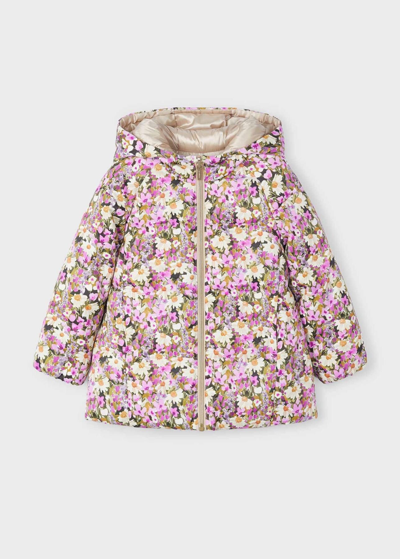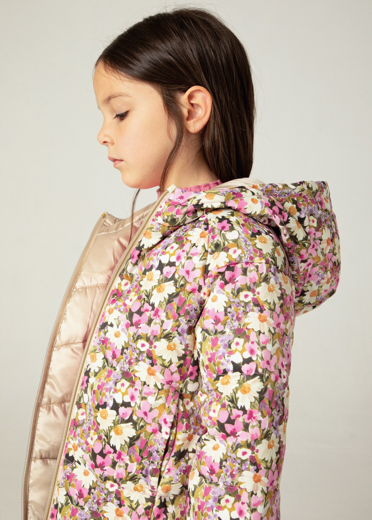 Kız Çocuk Çiçek Desenli Çift Taraflı Mont Lila