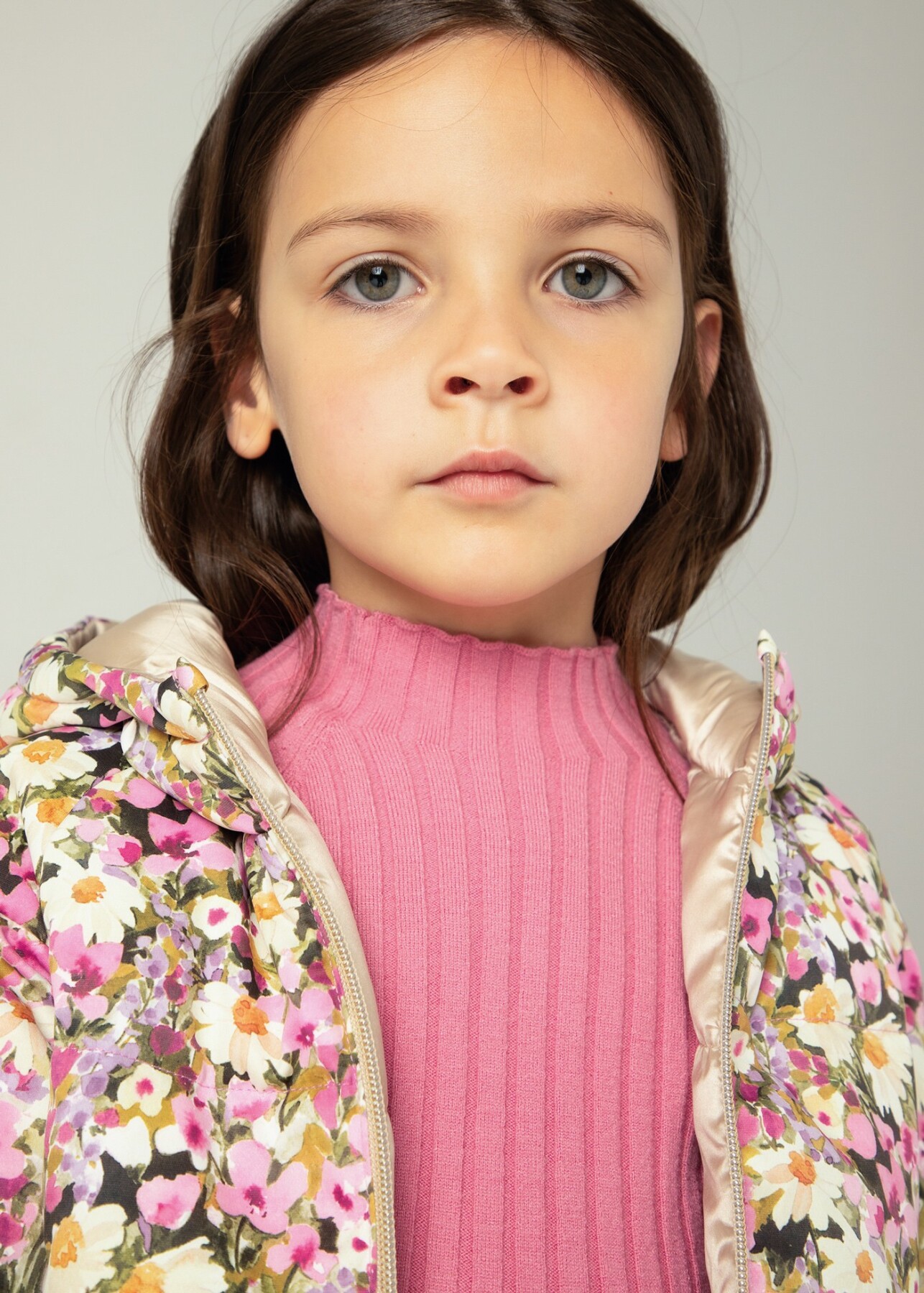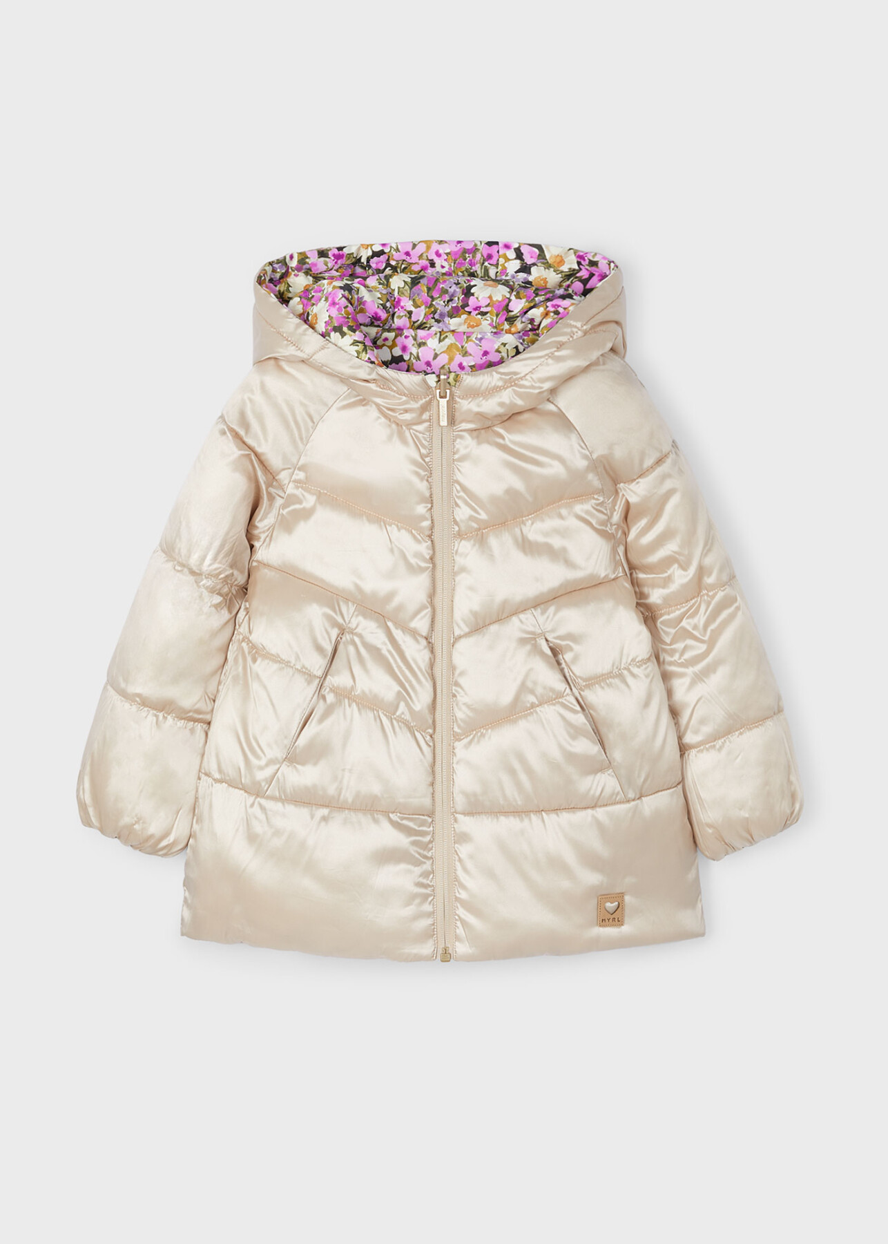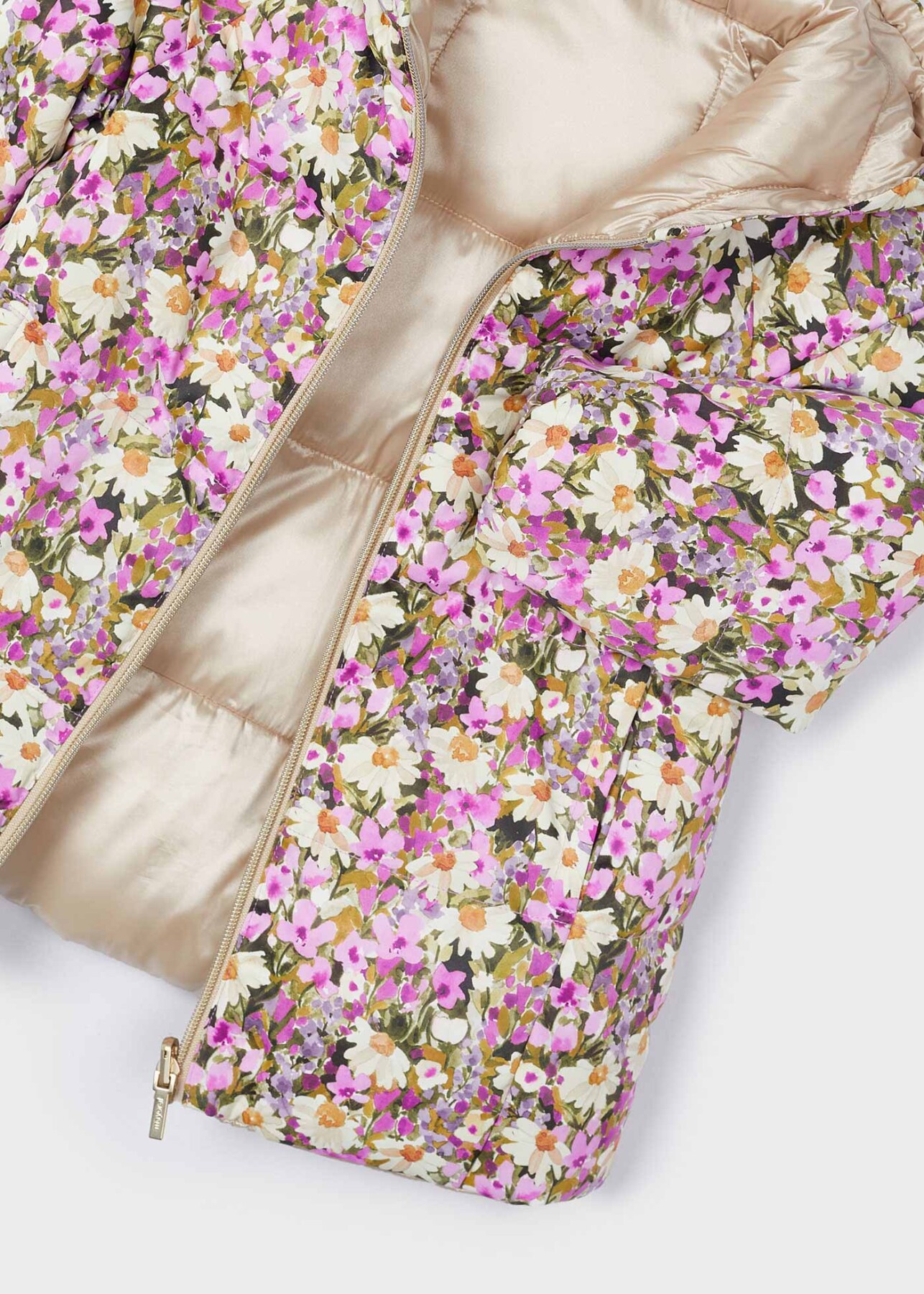 Kız Çocuk Çiçek Desenli Çift Taraflı Mont Lila