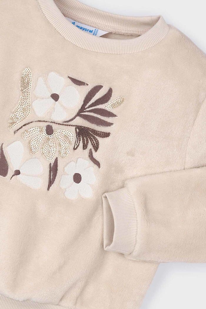 Konforu sanatsal bir tasarımla buluşturan bu sweatshirt, soğuk günlerin en şık parçasıdır. Yumuşacık ve sıcak tutan pelüş kumaşı, esnek yapısıyla gün boyu rahat bir kullanım sunar. Ön yüzünde yer alan, farklı dokulara sahip zarif çiçek nakışı, tasarıma sofistike ve göz alıcı bir dokunuş katıyor. Hem günlük kullanımda jean pantolonlarla hem de özel günlerde eteklerle kombinlenebilecek kadar çok yönlü olan bu parça, gardıroplara zarafet katacak.