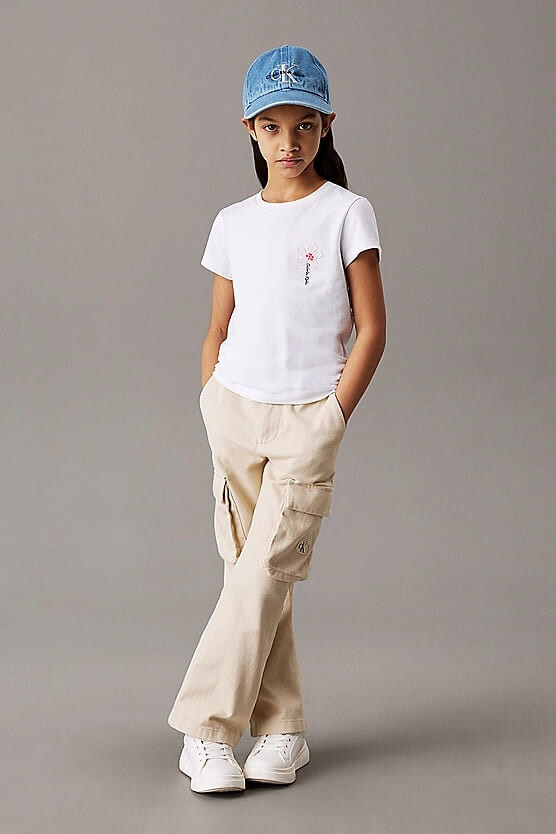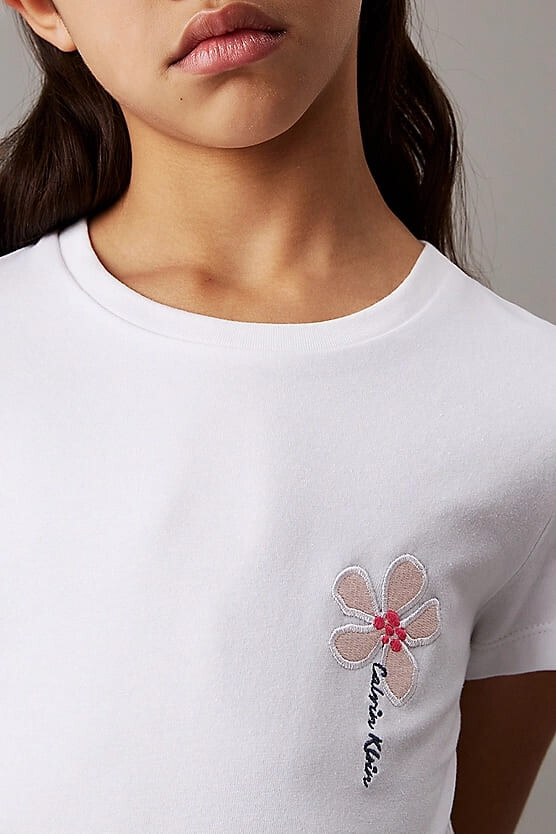 Kız Çocuk Ck Küçük Çiçek Logo T-Shirt - Beyaz