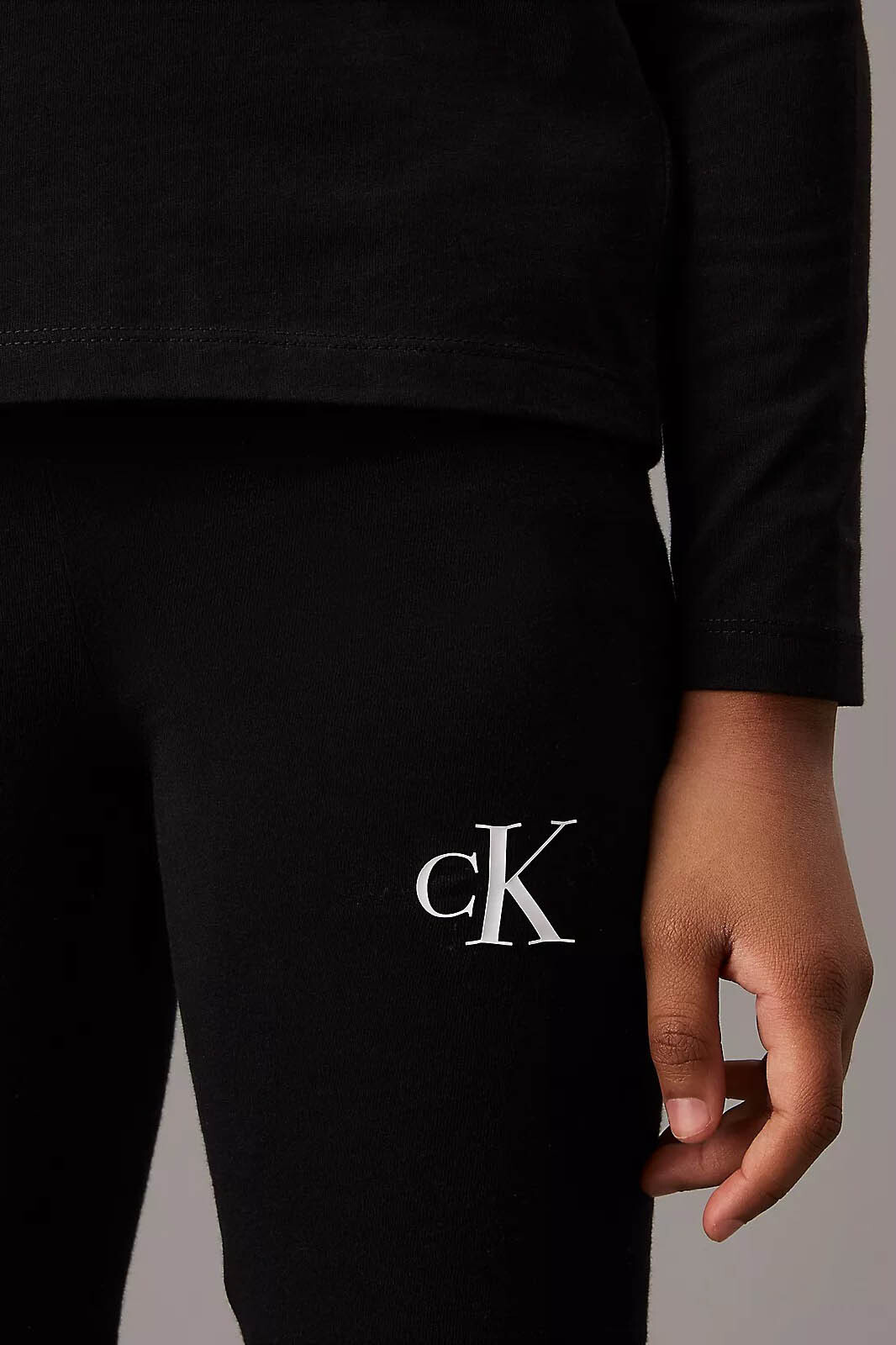 Tasarımın sol bacak kısmında yer alan minimal beyaz "CK" monologo baskısı, markanın modern ve prestijli imzasını taşır. Vücuda tam oturan skinny kalıbı ve elastik bel yapısı sayesinde çocuklara hem oyun saatlerinde hem de günlük aktivitelerde güvenli ve rahat bir kullanım sağlar. Dayanıklı dikiş detayları ve yüksek pamuk içerikli yapısı, kalitenin her adımda hissedilmesine olanak tanır.