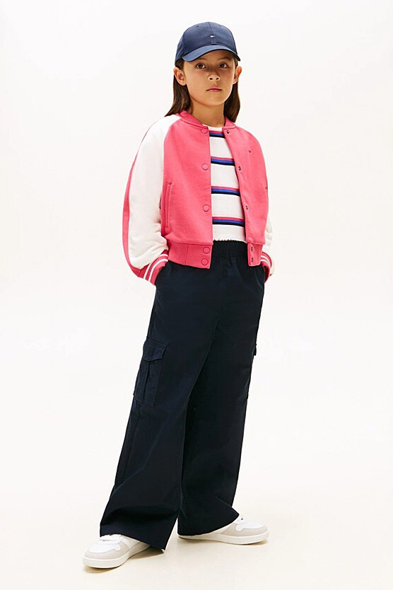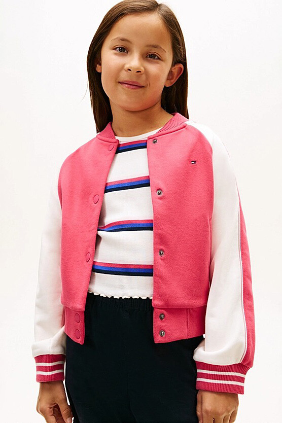 Kolej stilinin havalı ve zamansız enerjisini gardıroplara taşıyan Colour Blocked Varsity Bomber Ceket, kız çocukları için hem sportif hem de şık bir dış giyim alternatifi sunuyor. Dinamik renk bloklu tasarım, klasik beyzbol ceketlerinin ikonik duruşunu modern bir konforla yorumluyor. Raglan kolları ve çizgili ribana manşet detaylarıyla hareketli günlerde özgürlük ve otantik bir stil tanırken; sırt kısmındaki iddialı nakış detayları, arkadan bakıldığında bile fark edilen güçlü bir tarz yaratıyor. Çıtçıtlı ön kapaması sayesinde pratik bir kullanım sunan bu ceket, okuldan hafta sonu gezmelerine kadar her anın cool tamamlayıcısı olmaya aday.