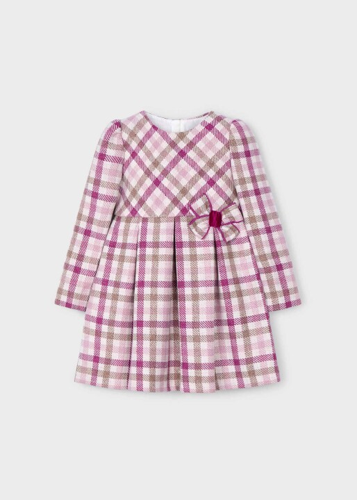 Kız Çocuk Ekoseli Elbise Pembe