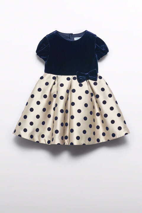 Kız Çocuk Fırfırlı Puantiyeli Mikado Elbise - Lacivert