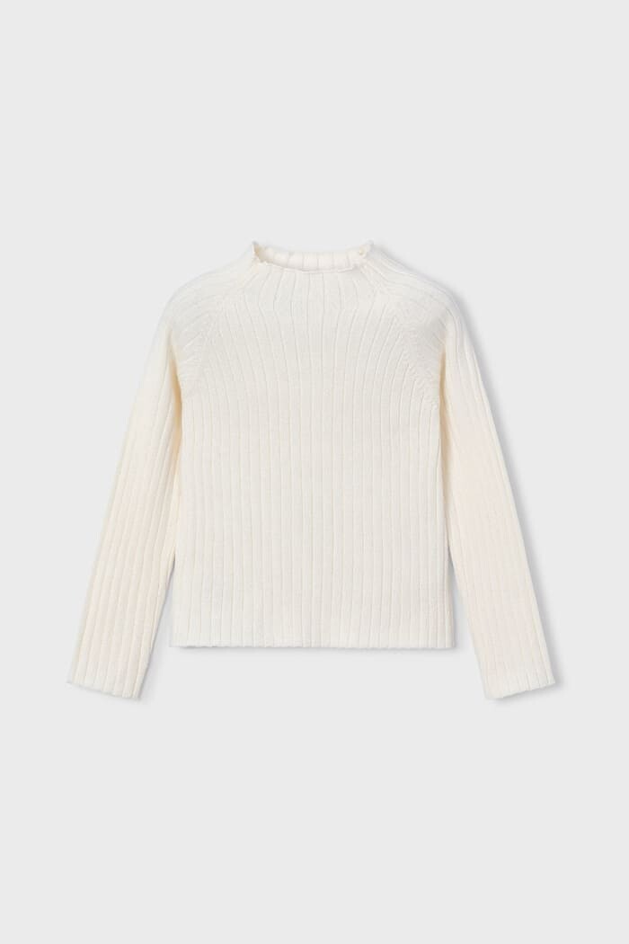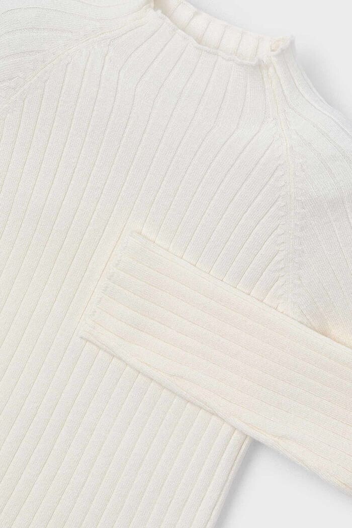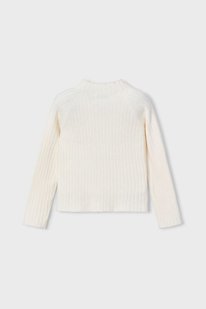Kız Çocuk Fitilli Balıkçı Yaka Triko Kazak - Krem