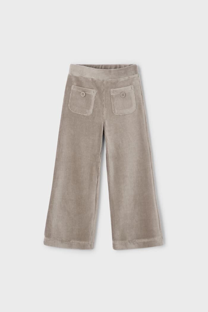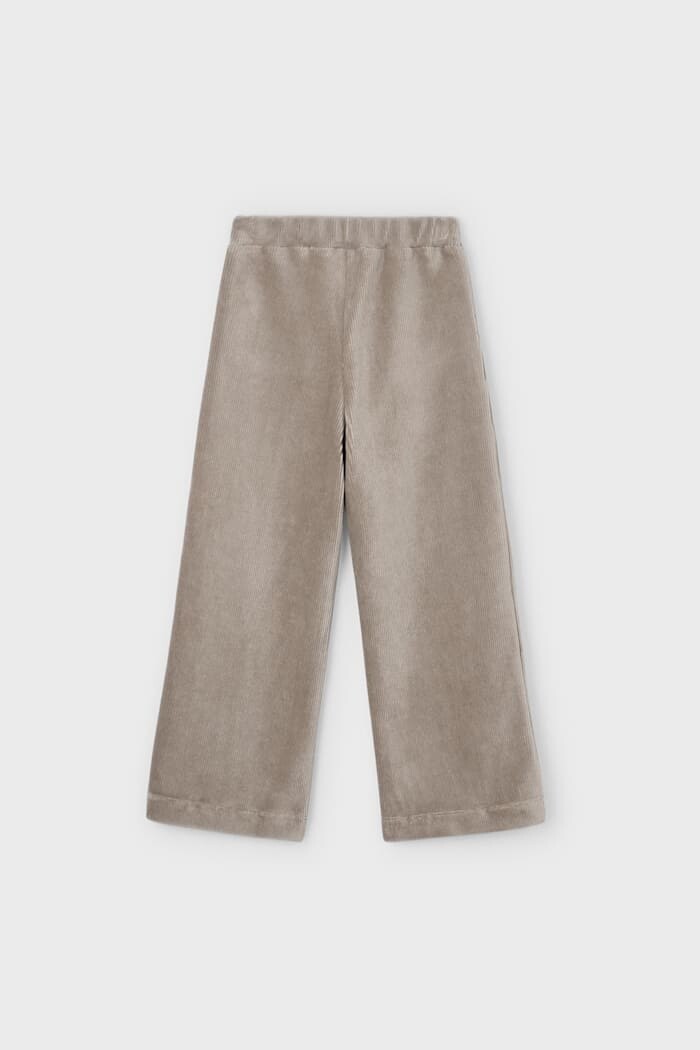 Retro stili ve modern konforu bir araya getiren bu pantolon, soğuk havaların en rahat ve şık parçasıdır. Kadifenin klasik dokusunu esnek bir yapıyla sunan fitilli kumaşı, gün boyu sınırsız hareket özgürlüğü ve sıcaklık sağlar. Trendlere uygun geniş paça kesimi, hem konforlu hem de son derece havalı bir görünüm sunar. Geniş lastikli beli sayesinde vücuda tam oturan pantolonun arkasındaki düğmeli cepleri, tasarıma sevimli bir dokunuş katıyor. Trikolar, bluzlar ve sweatshirt'ler ile mükemmel bir uyum yakalayan bu parça, gardıropların favorisi olacak.