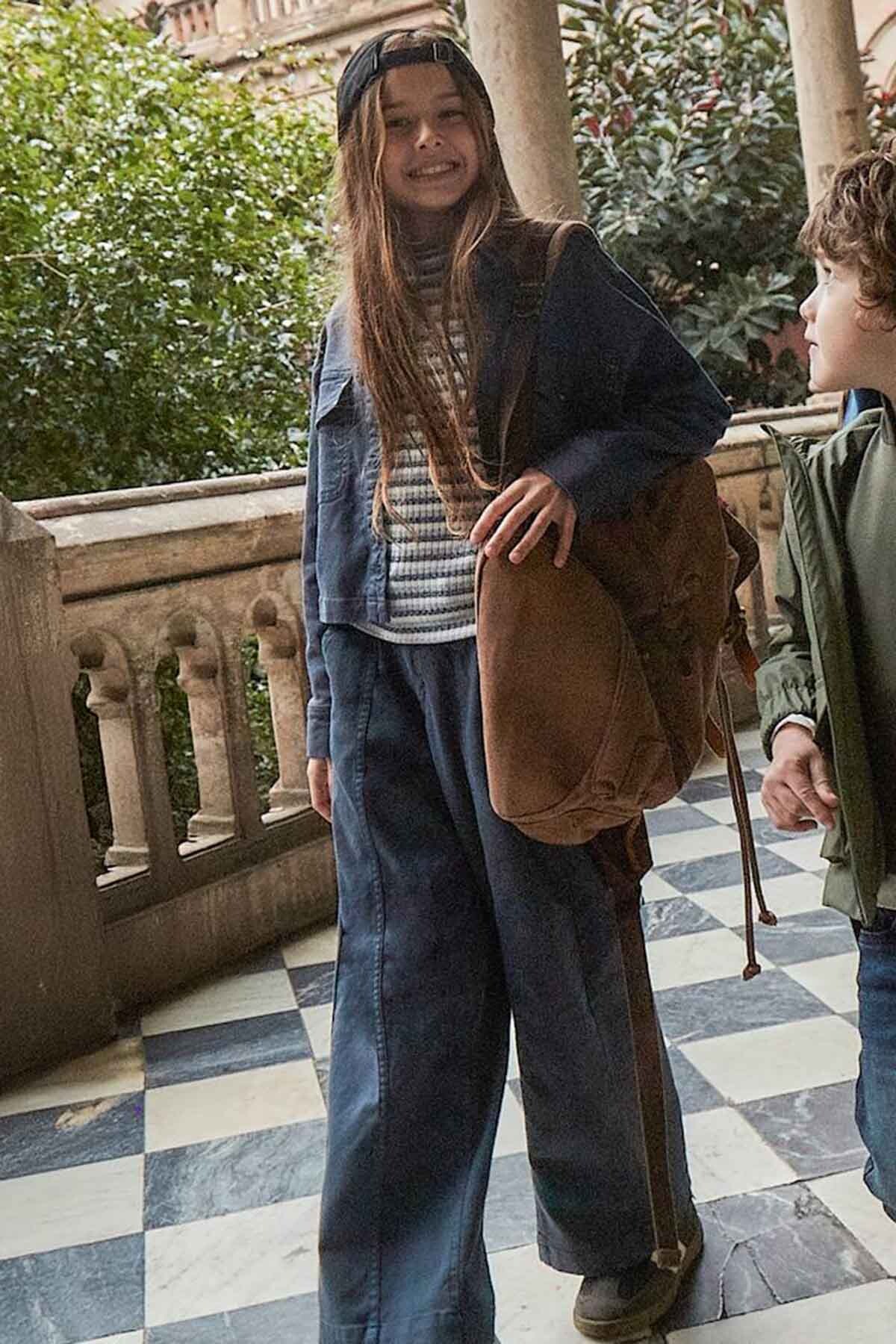 Rahat kalıbı sayesinde gün boyu konfor sağlayan kız çocuk bol kesim pantolon, şık ve modern tasarımıyla öne çıkıyor. Denim görünümlü lacivert tonu ile basic tişörtlerden kazaklara kadar farklı kombinlerle uyumlu.