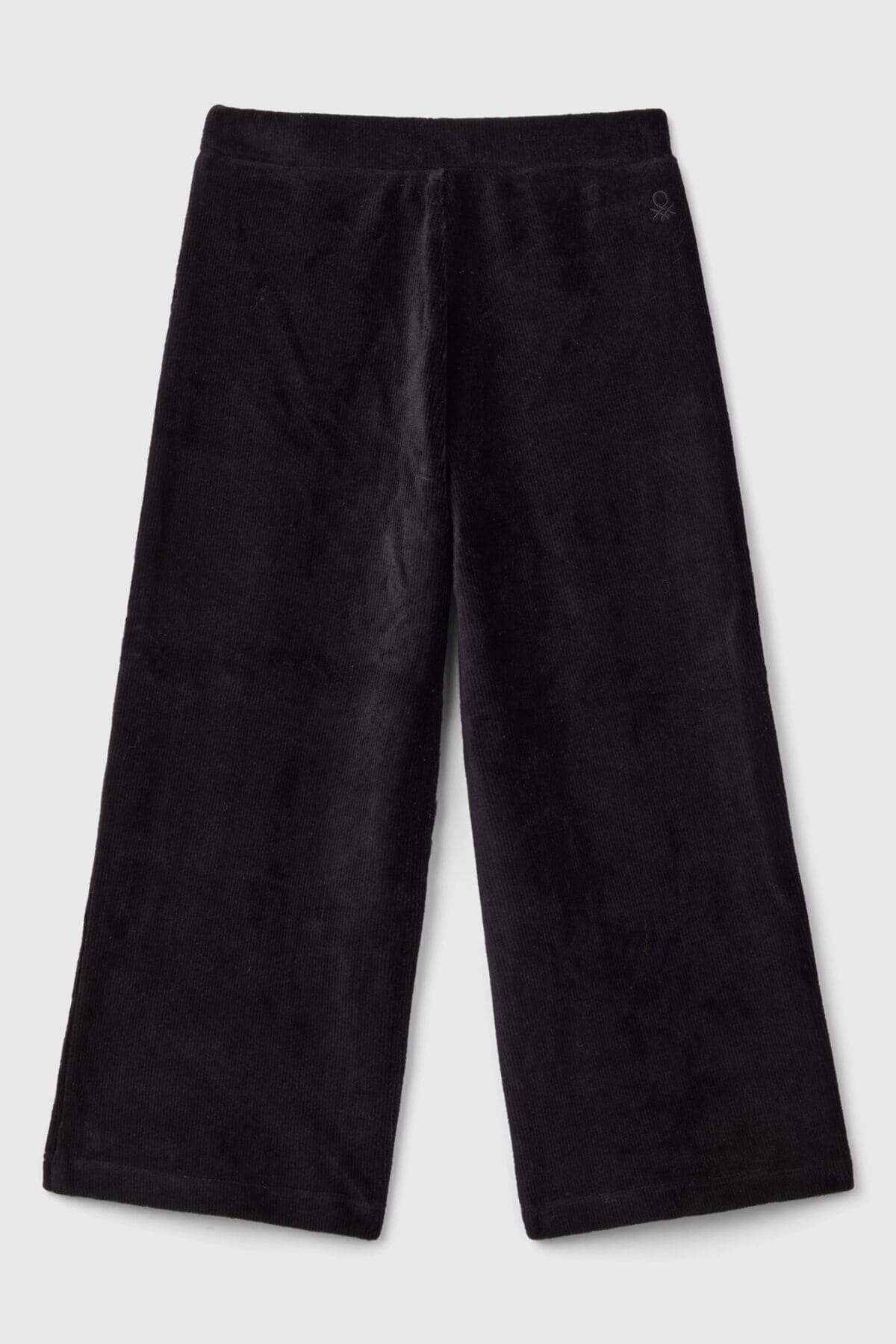 Kız Çocuk Geniş Şönil Pantolon - Siyah