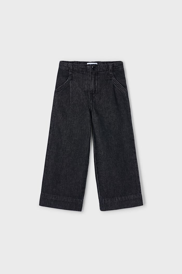 Retro esintileri modern tasarımla buluşturan bu İspanyol paça kot pantolon, stil sahibi çocuklar için tasarlandı. Dizden aşağı doğru genişleyen trend kesimi, her kombine havalı bir dokunuş katarken, %100 pamuklu dayanıklı kot kumaşı gün boyu konfor sunar. Yıkamalı siyah rengi ve özgün cep tasarımı ile dikkat çeken bu parça, hem basic tişörtlerle hem de şık kazaklarla mükemmel bir uyum sağlar. Gardıropların en çok yönlü ve stil sahibi parçalarından biri olmaya adaydır.