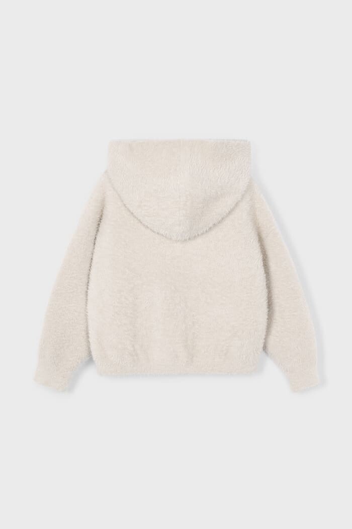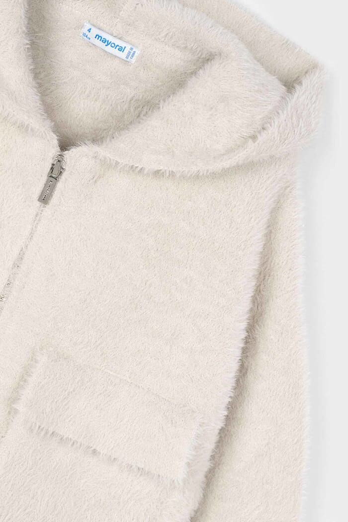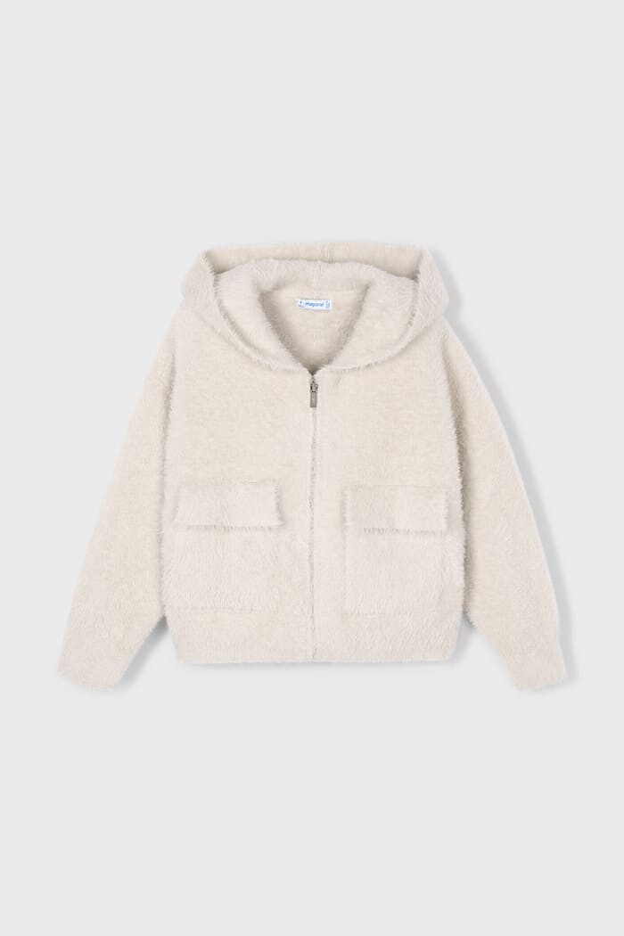 Sıcak ve yumuşacık bir dokunuşla çocukları sarıp sarmalayan bu hırka, soğuk günlerin en konforlu parçasıdır. Tamamı lüks ve pelüş dokulu ipliklerle örülmüş olan hırka, inanılmaz bir yumuşaklık ve sıcaklık sunar. Rahat kesimi, kapüşonu ve kullanışlı ön cepleriyle son derece fonksiyonel bir tasarıma sahiptir. Önündeki tam boy fermuar sayesinde kolayca giyilip çıkarılabilen bu parça, hem evde hem de dışarıda, serin havalarda mükemmel bir katman oluşturur.