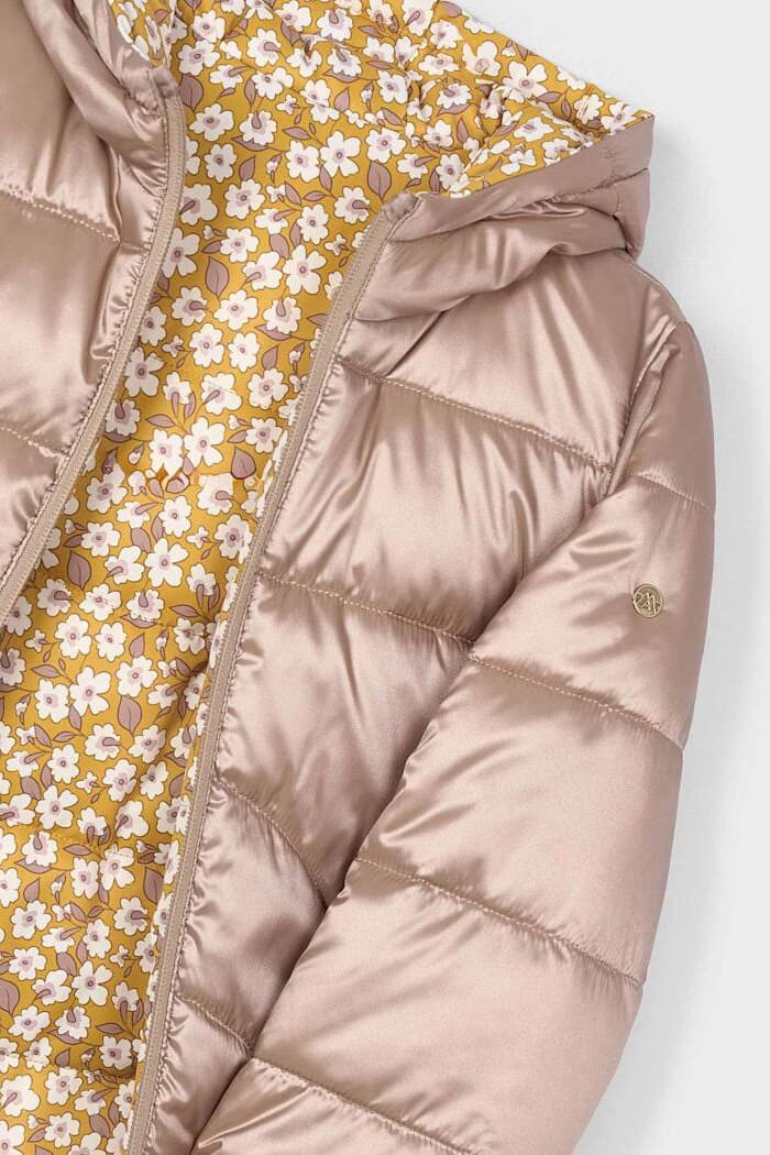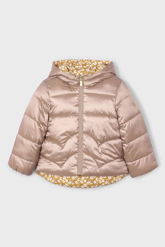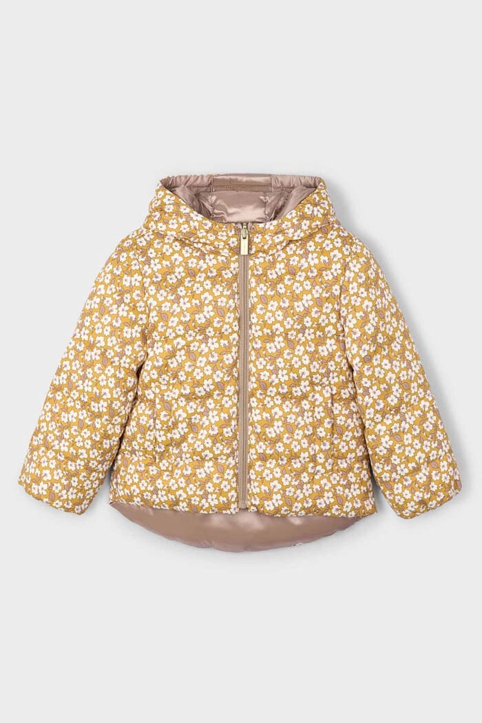 İki farklı stili tek bir montta sunan bu parça, çocukların kış gardırobuna işlevsellik ve neşe katıyor. Çift taraflı kullanılabilen tasarımı sayesinde bir yüzüyle parlak vizon rengi şıklığı sunarken, diğer yüzündeki hardal rengi zemin üzerine çiçek deseniyle enerjik bir görünüm yaratır. Hafif polyester dolgusu, soğuk havalarda ağırlık yapmadan üstün koruma ve sıcaklık sağlar. Rüzgarlı günler için ideal olan kapüşonu ve rahat kesimi ile çocuğunuzun dışarıdaki maceralarında konforu garantiler.