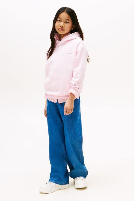 Kız Çocuk Kapüşonlu Minimal Logo Baskılı Sweatshirt - Pembe