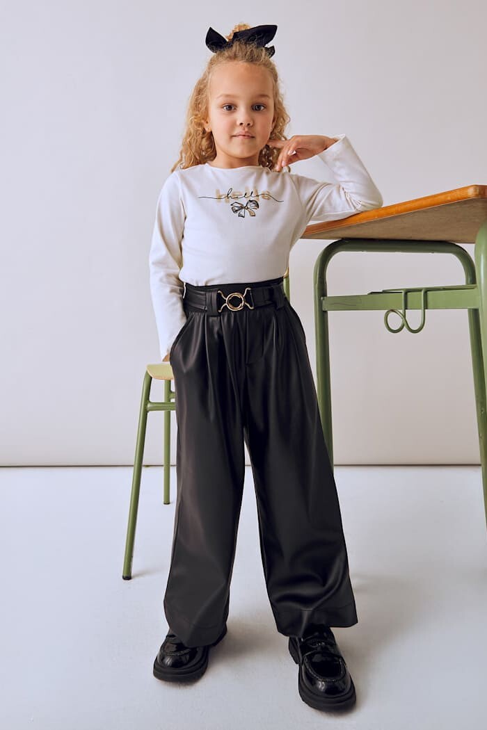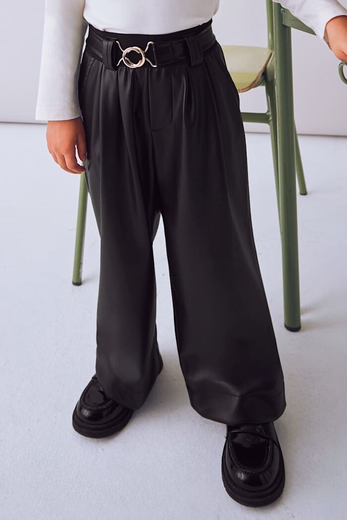 Son derece havalı ve trend bir parça olan bu pantolon, çocukların gardırobuna modern bir dokunuş katıyor. Yumuşak ve esnek kumaşı, şık bir görünümü gün boyu süren konforla birleştirir. Ön kısmındaki pili detayları ve rahat geniş paça kesimi, hem stil sahibi bir silüet yaratır hem de hareket özgürlüğü sunar. Tasarımın en dikkat çekici unsuru olan ve bele vurgu yapan şık tokalı kemeri, pantolona sofistike bir hava katar. Trikolar, gömlekler veya basic tişörtlerle kombinlenerek her ortamda fark yaratan bir stil oluşturur.