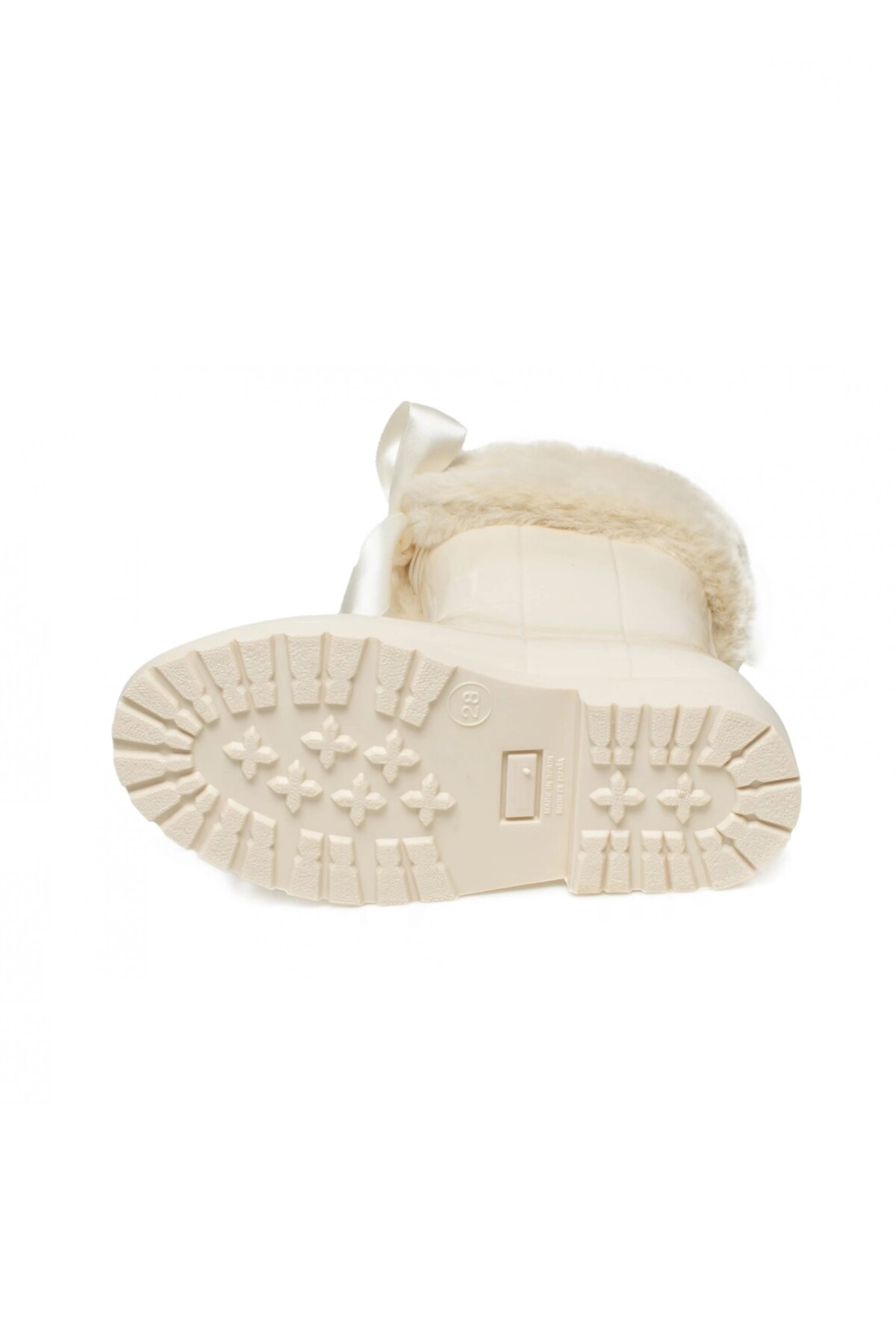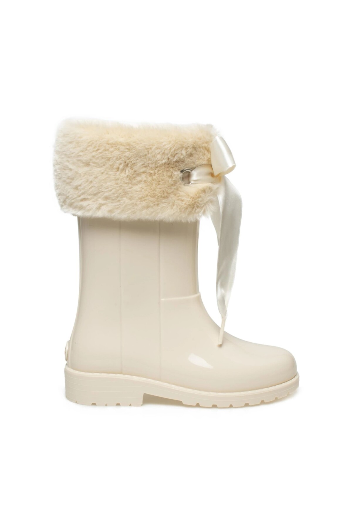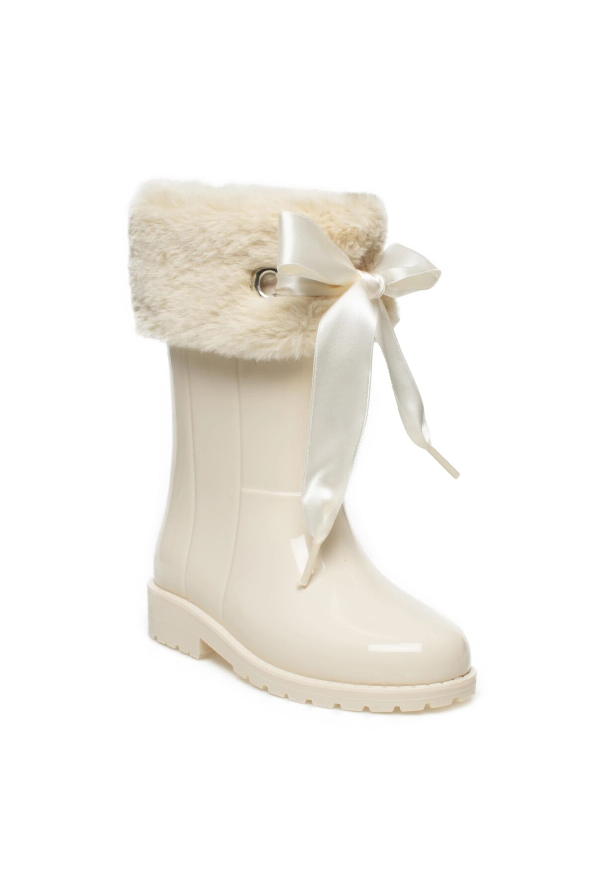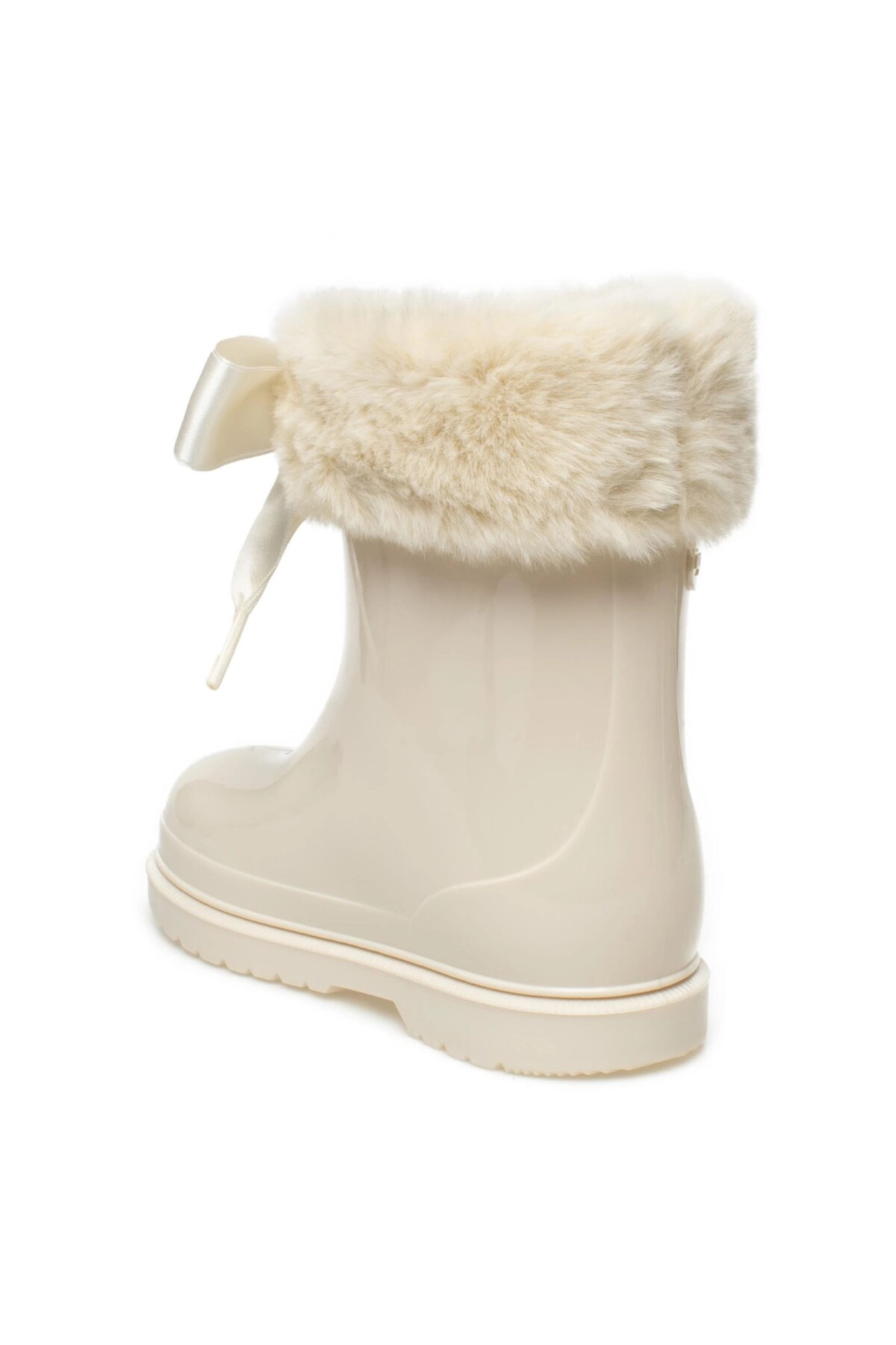 Soğuk ve yağmurlu günlerde minik adımlara hem şıklık hem de sıcaklık katacak bu sevimli çizme, çocukların favorisi olacak. Bilek kısmındaki yumuşacık kürk detayı ve zarif saten kurdelesiyle göz alıcı bir tasarım sunan model, parlak yüzeyiyle de dikkat çeker. Kaymayı önleyici tırtıklı tabanı sayesinde güvenli bir kullanım sunan bu çizme, konfor ve stili bir arada arayanlar için ideal bir seçenektir.
