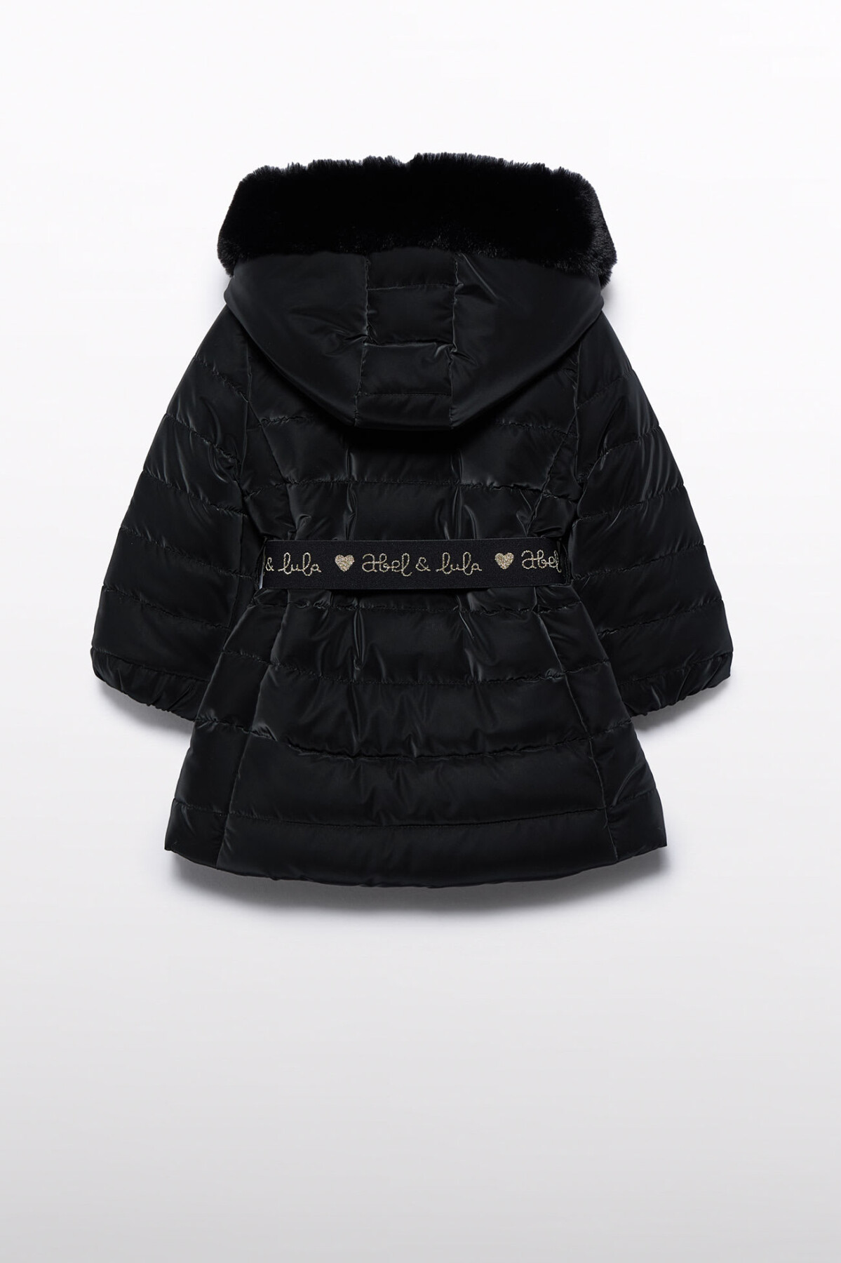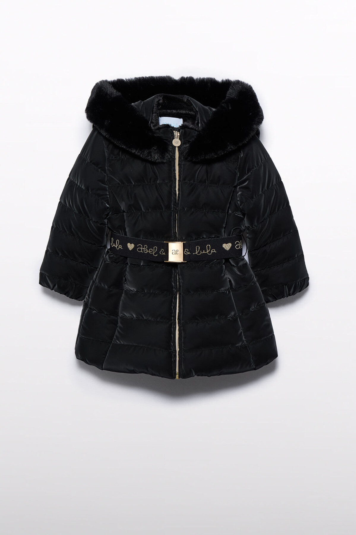 Kız Çocuk Logolu Kemerli Mont - Siyah