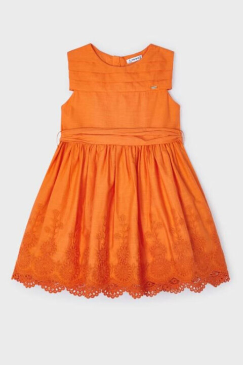 Kız Çocuk Nakışlı Elbise - Turuncu