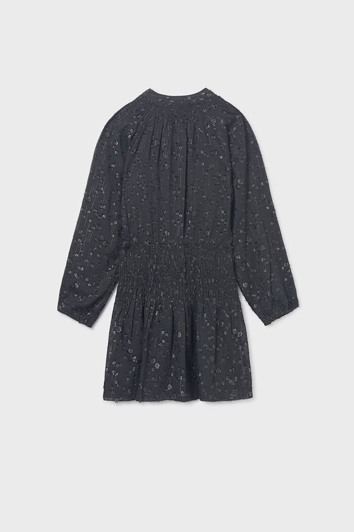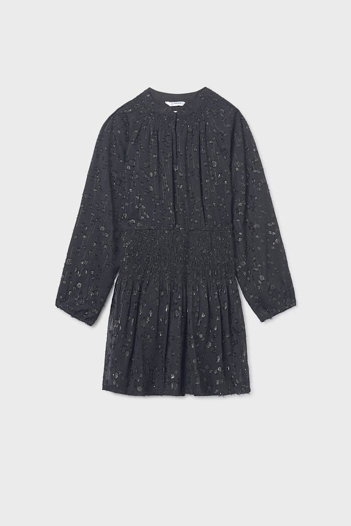 Zarafeti ve modern detayları bir araya getiren bu şifon elbise, her anınıza şıklık katmak için tasarlandı. Uçuş uçuş hafif kumaşı ve üzerindeki ışıltılı dokusuyla dikkat çekerken, beli lastikli gipe detayı konforlu bir silüet yaratır. Büzgülü hakim yakası ve dökümlü uzun kolları, tasarıma romantik bir hava katar. Hem gündüz hem de gece kombinlerinizde rahatlıkla tercih edebileceğiniz bu parça, gardırobunuzun en özel elbiselerinden biri olacak.