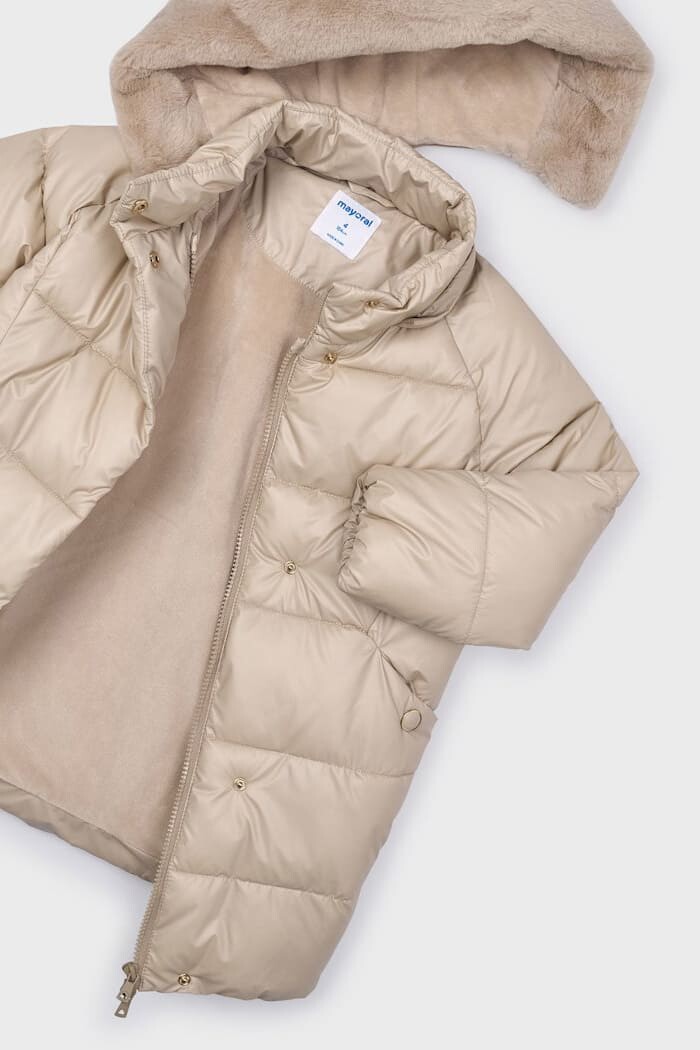 En soğuk kış günlerinde bile maksimum sıcaklık ve şıklık sunmak için tasarlanan bu uzun şişme mont, çocukların vazgeçilmezi olacak. Vücudu saran uzun kesimi, soğuk havaya karşı ekstra koruma sağlarken, dolgulu kapitone yapısı sıcaklığı içeride tutar. Tasarımın en dikkat çekici özelliği olan yumuşacık pelüş astarlı kapüşonu, baş ve boyun bölgesini sıcak tutarken lüks bir konfor hissi verir. Okul yolundan kış tatillerine kadar her an için ideal olan bu mont, fonksiyonelliği ve zarif stili bir araya getiriyor.