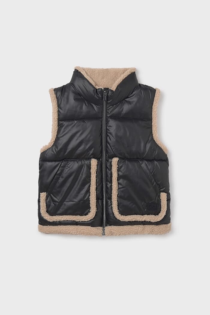 Soğuk havalara hem stil hem de sıcaklık katmak için tasarlanan bu şişme yelek, sezonun en trend parçalarından biridir. Hafif dolgulu yapısı, vücudu sıcak tutarken hareket özgürlüğünü kısıtlamaz. Yeleğin en dikkat çekici özelliği olan yaka, kol ağzı, etek ucu ve ceplerindeki kontrast renkli yumuşacık pelüş şeritler, tasarıma hem sevimli hem de şık bir hava katar. Sweatshirt'ler ve kazaklar üzerine giymek için ideal olan bu yelek, katmanlı kombinlerin vazgeçilmez bir tamamlayıcısı olacak.