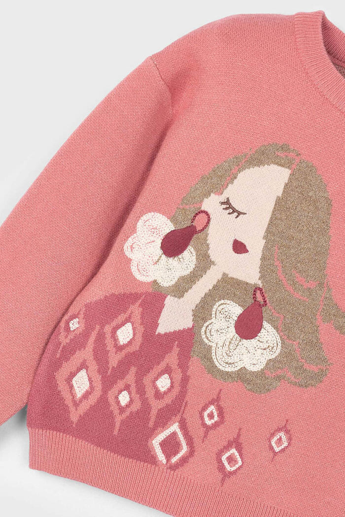 Sanatsal bir dokunuşa sahip bu triko kazak, soğuk günlere sıcaklık ve stil katıyor. İçeriğindeki yün karışımıyla konforlu bir sıcaklık sunan yumuşak triko kumaşı, çocukların rahat etmesi için tasarlanmıştır. Kazağın ön yüzünü süsleyen ve ışıltılı ipliklerle zenginleştirilmiş büyük jakarlı portre deseni, bu parçayı adeta giyilebilir bir sanat eserine dönüştürür. Hem günlük kullanımda hem de özel anlarda fark yaratacak bu kazak, çocuğunuzun gardırobunun en özel parçalarından biri olacak.