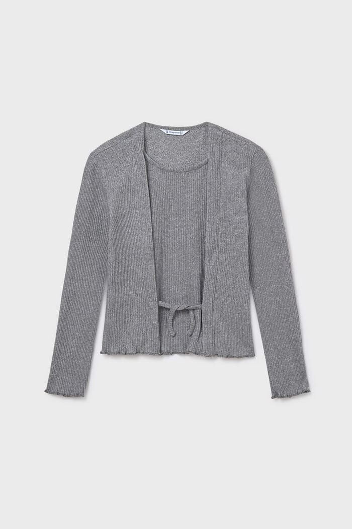 Çok yönlü ve şık bir stil sunan bu ikili triko takım, ışıltılı detaylarıyla göz kamaştırıyor. Simli ipliklerle dokunmuş yumuşak ve esnek fitilli triko kumaştan üretilen set, bir atlet ve bir hırkadan oluşur. Vücuda oturan yapısıyla konforlu bir kullanım sunan takımın hırkasındaki önü bağlama detayı, tasarıma modern bir dokunuş katıyor. İster bir arada kullanarak bütüncül bir şıklık yakalayın, ister ayrı ayrı farklı parçalarla kombinleyerek gardırobunuza çeşitlilik katın. Parıltılı dokusuyla özel günler için de harika bir seçimdir.