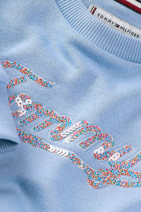 Kız Çocuk Payetli Script Logolu Sweatshirt - Mavi