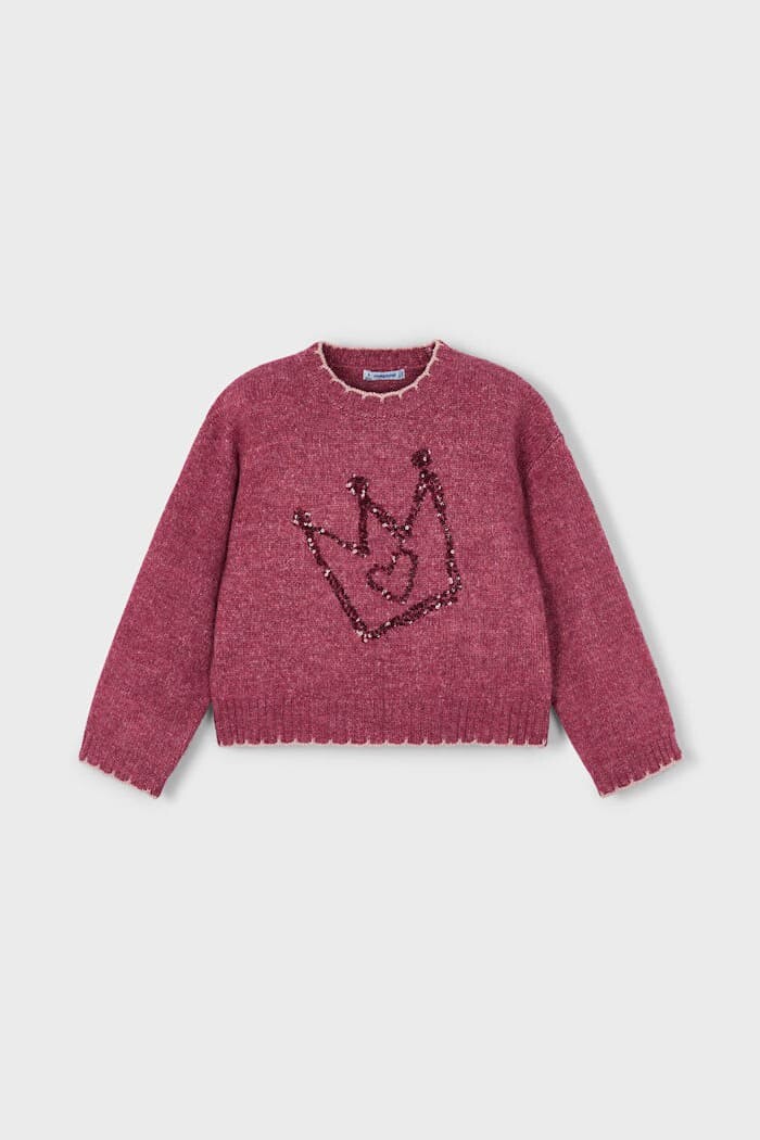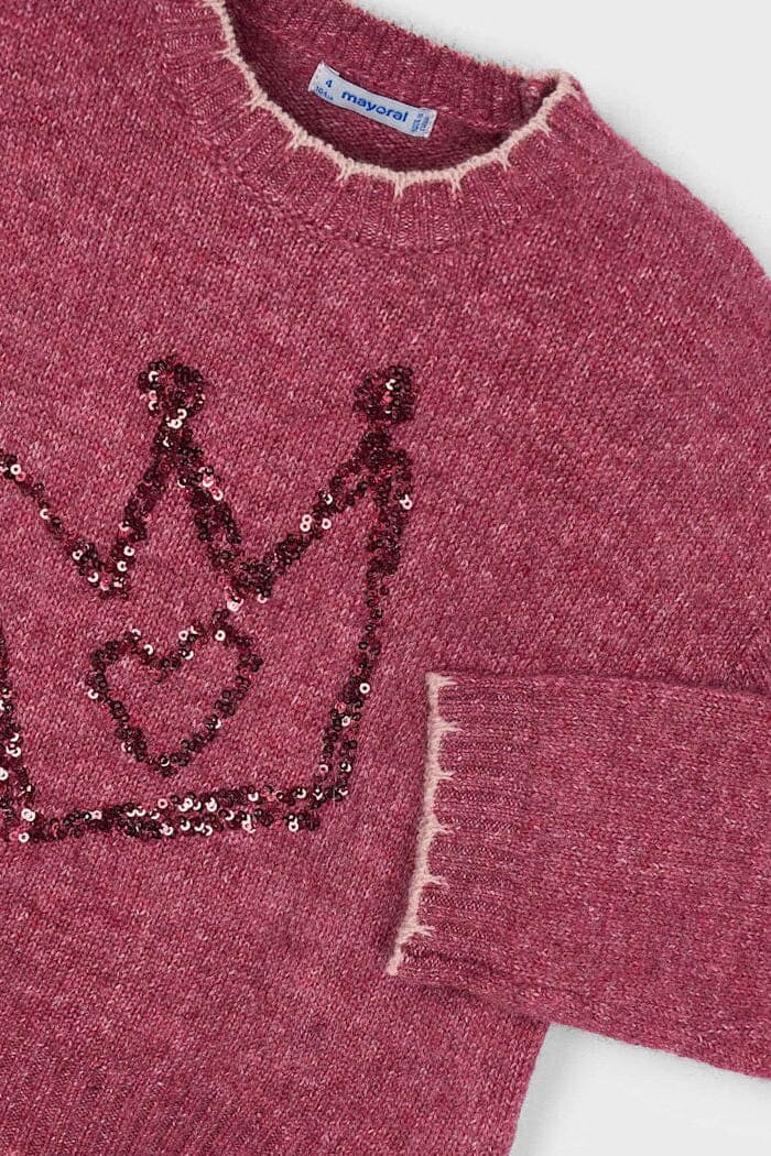Kendini prenses gibi hissetmek isteyen çocuklar için tasarlanan bu kazak, ışıltıyı ve konforu bir araya getiriyor. Yumuşacık ve esnek triko kumaşı, gün boyu sıcak ve rahat bir kullanım sunar. Kazağın ön yüzünü süsleyen büyük ve parlak payetli taç işlemesi, tasarıma göz alıcı ve eğlenceli bir dokunuş katıyor. Yaka, manşet ve etek ucundaki kıvrımlı bitiş detayı, kazağa modern bir hava kazandırır. Jean pantolonlar veya eteklerle kombinlendiğinde, her ortamda parlayacak bir stil yaratır.