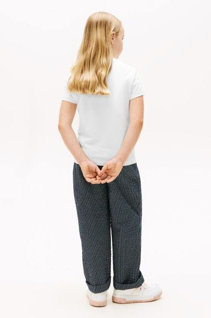 Işıltılı detaylarla süslenmiş bu t-shirt, çocukların enerjik ve eğlenceli dünyasını yansıtıyor. Klasik beyaz t-shirt konforu, göz alıcı bir şıklıkla birleşiyor. Yumuşacık %100 pamuklu kumaşı, hassas ciltlere dost bir dokunuş sunarken gün boyu rahatlık sağlar. Tasarımın en sevilen detayı, göğüs kısmında yer alan ve rengarenk pullarla işlenmiş ışıltılı yazı grafiğidir. Bu detay, t-shirt'e canlı ve hareketli bir görünüm katar.