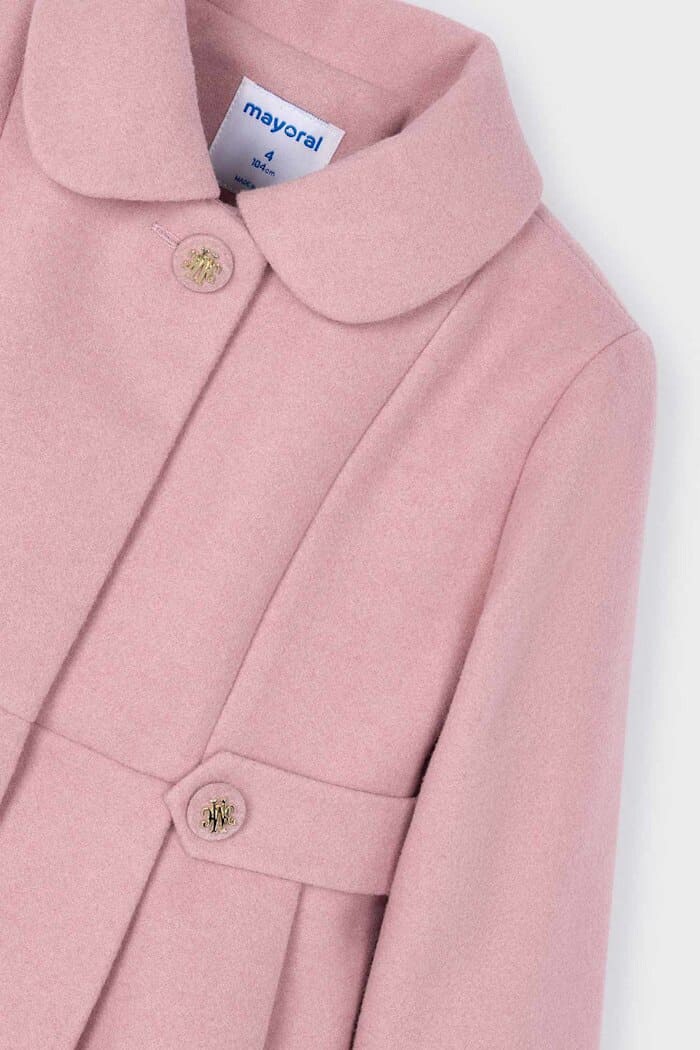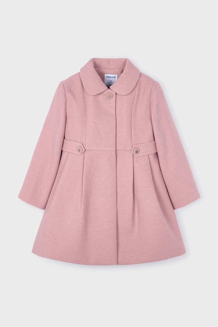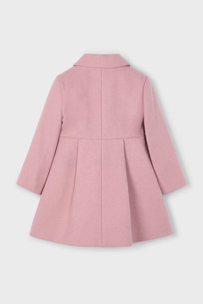 Zamansız bir zarafete sahip bu kaban, özel günler ve şık anlar için tasarlanmıştır. Yumuşak ve tok dokulu kaşe kumaşı, soğuk havalarda sıcak tutarken konforlu bir kullanım sunar. Belden başlayan ve aşağı doğru genişleyen pili detayları, kabana elbise benzeri sevimli bir form kazandırır. Tasarımın şıklığını, sevimli bebe yakası ve bel kısmındaki dekoratif düğme detayları tamamlar. Pürüzsüz astarı sayesinde kolayca giyilebilen bu kaban, elbiselerin ve şık takımların üzerine giymek için mükemmel bir dış giyim parçasıdır.