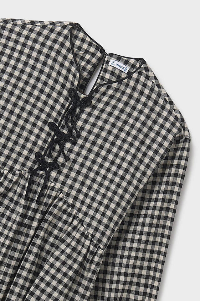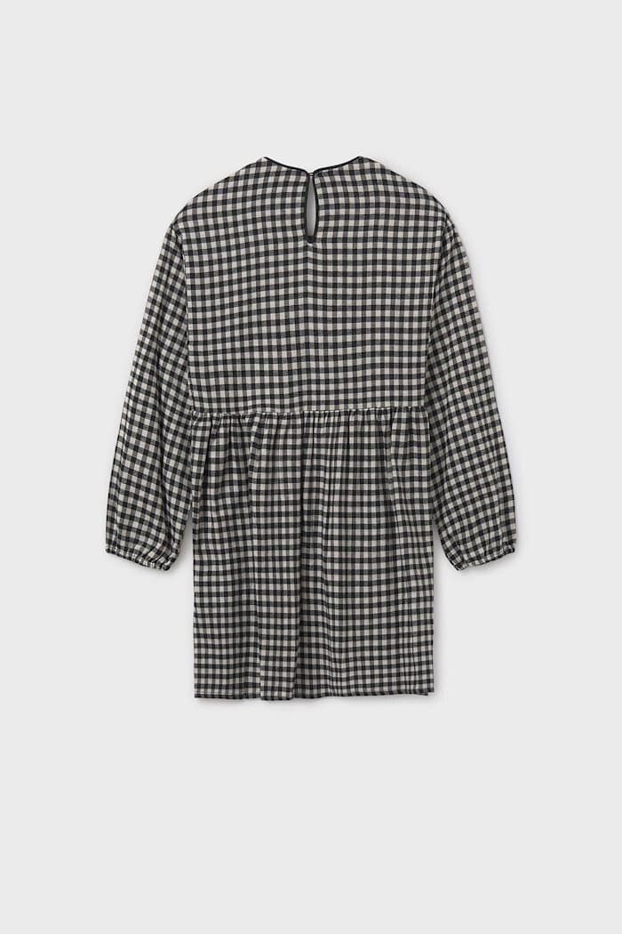 Zamansız pötikare desenini modern detaylarla buluşturan bu elbise, çocukların gardırobuna sevimli bir dokunuş katıyor. Nefes alabilen %100 pamuklu kumaşı ve rahat kesimi, gün boyu konforlu bir kullanım sunar. V yakasındaki kadife bağcık detayı, tasarıma özgün ve şık bir hava katarken, beli büzgülü modeli ve lastikli kolları rahatlığı ön planda tutar. Hem günlük kullanım hem de özel günler için uygun olan bu elbise, her mevsimde stil sahibi bir görünüm vadeder.
