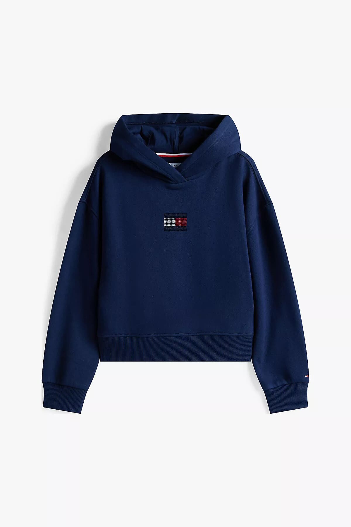 Günlük görünümlere ışıltılı bir dokunuş katmak için tasarlanan bu rahat kapüşonlu sweatshirt, klasik lacivert rengiyle öne çıkıyor. İçi yumuşak şardonlu pamuk karışımlı kumaşı, soğuk günlerde sıcacık bir his sunar. Düşük omuzlu rahat kalıbı, modern ve konforlu bir silüet yaratır. Göğüs kısmında yer alan göz alıcı taşlı amblem, tasarıma eğlenceli bir parlaklık katarken, kolundaki küçük amblem stili tamamlar.