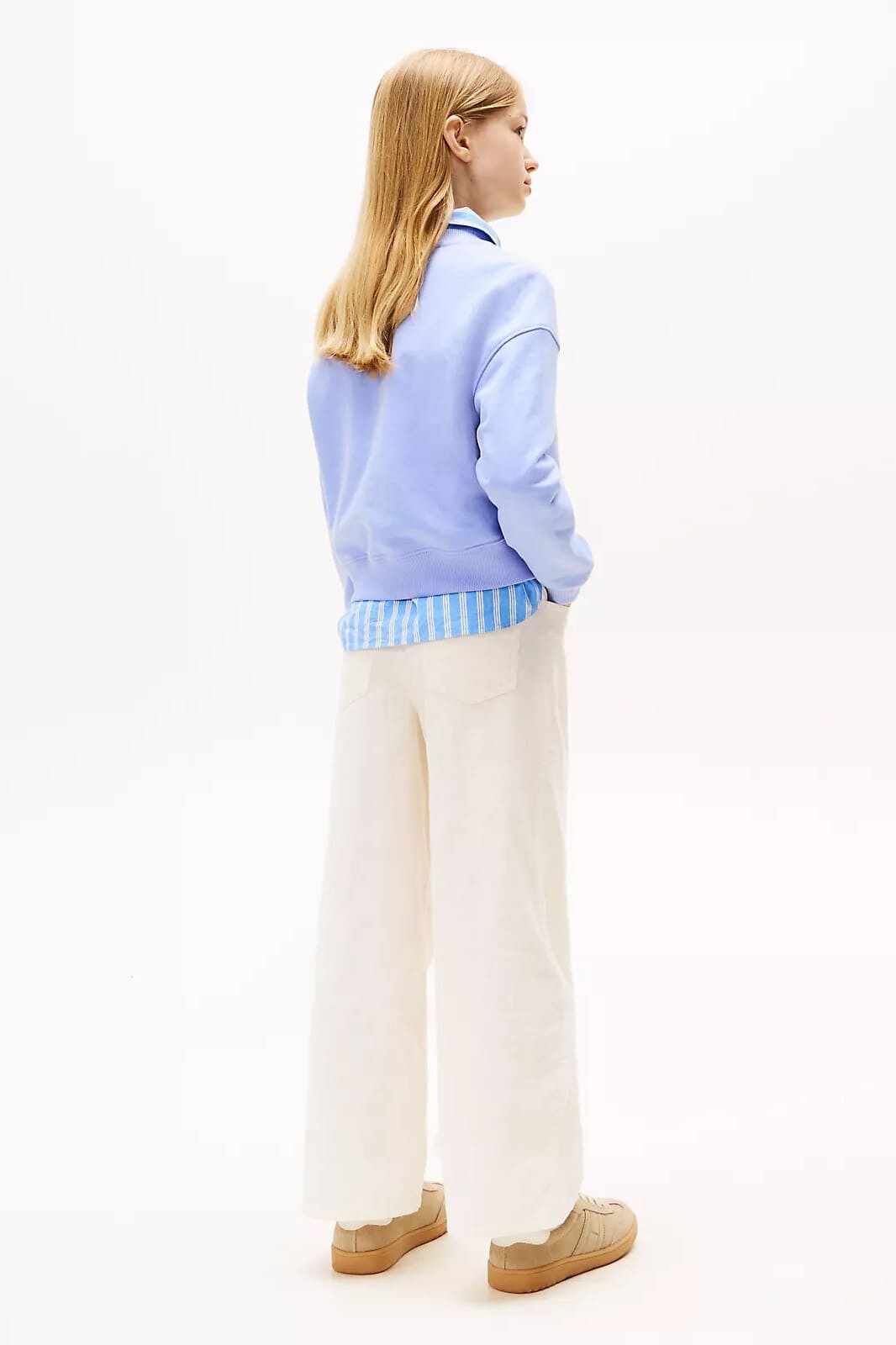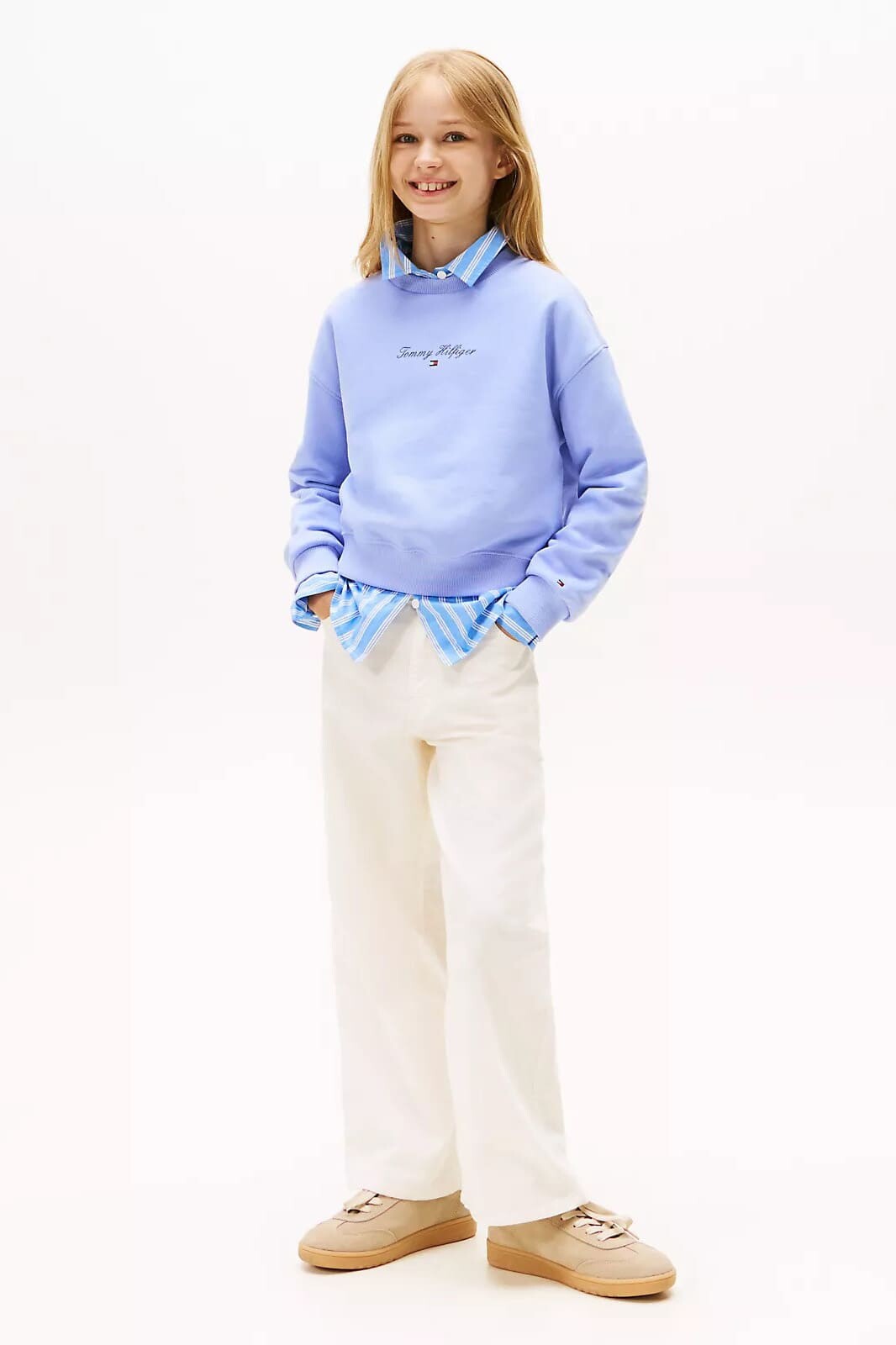 Günlük konforu, çevreye duyarlı malzemeler ve trend bir renkle birleştiren bu sweatshirt, her çocuğun gardırobuna neşe katıyor. Rejeneratif pamuk ve geri dönüştürülmüş polyesterin yumuşak karışımından üretilen kumaşı, gün boyu rahatlık sunar. Göğüs kısmındaki zarif el yazısı stili nakış logosu, tasarıma özgün bir dokunuş katar. Nervürlü yaka, manşetler ve etek ucu, oyun ve hareket dolu anlarda bile modern ve konforlu bir uyum sağlar.