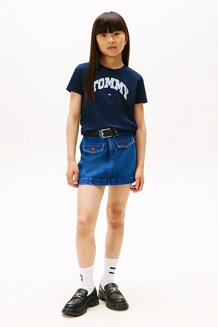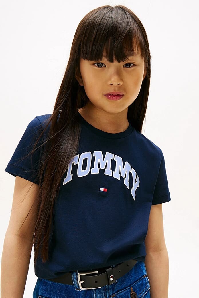 Kolej stilinin enerjisini yansıtan bu tişört, çocukların gardırobuna havalı bir dokunuş katıyor. %100 pamuklu, yumuşak ve nefes alabilen kumaşı, gün boyu konforlu bir kullanım sağlar. Tasarımın odak noktası olan göğüsteki büyük ve kavisli "Tommy" yazısı, parlak saten kumaştan aplike tekniğiyle işlenerek dokulu ve şık bir görünüm yaratır. Günlük kullanım için ideal olan bu tişört, jean'lerden eteklere kadar her parçayla kolayca uyum sağlar.