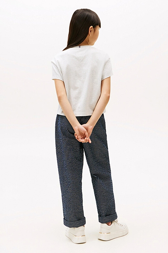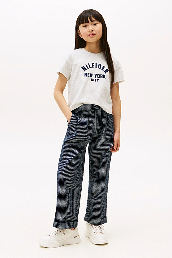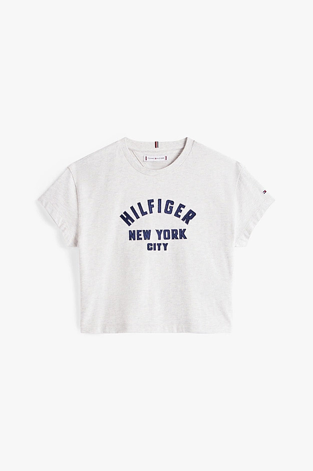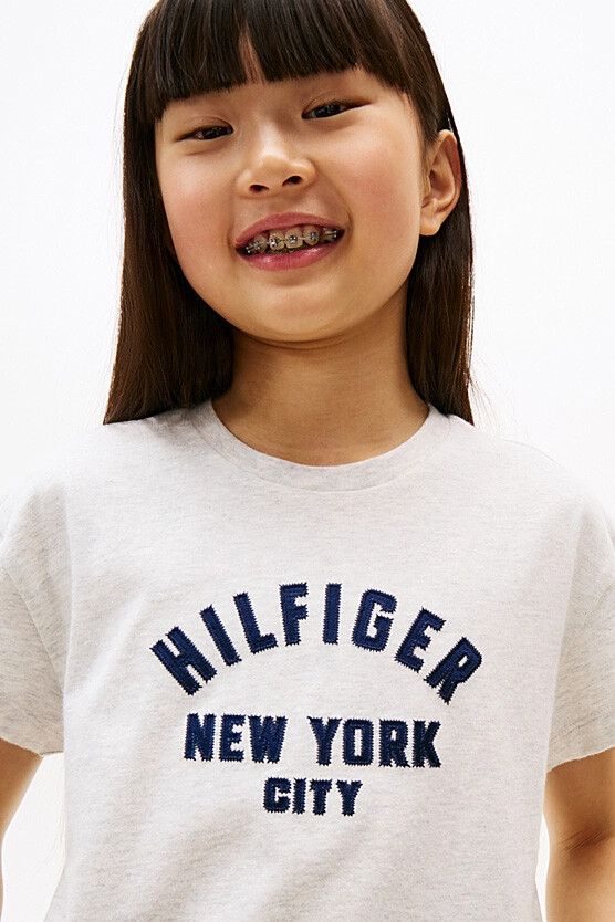 Klasik tişört stili, bu tasarımda şık bir detayla buluşuyor. %100 pamuklu, yumuşak ve nefes alabilen kumaşı ile çocuklar için gün boyu konfor sunar. Ön kısmında yer alan, saten kumaştan özenle işlenmiş aplike logo, tişörte dokulu ve kaliteli bir hava katarken, kolej stilinden ilham alan tasarımıyla dikkat çeker. Hem günlük kullanım hem de özel anlar için jean'ler, şortlar veya eteklerle kolayca kombinlenebilir.