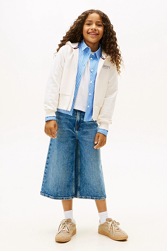 Serin havalarda sıcak bir koruma sağlarken stilinden ödün vermek istemeyen kız çocukları için tasarlanan Terry kapüşonlu ve fermuarlı sweatshirt, her kombine aydınlık bir dokunuş katıyor. Beyaz rengin saf ve zarif kırık beyaz tonu, peached tekniğiyle yumuşatılmış pamuklu dokusuyla birleşerek cilde nazik ve konforlu bir his veriyor. Sırt kısmındaki zarif ama dikkat çekici nakış logosu, arkadan bakıldığında bile modern bir tarz sunarken; geniş ribanalı etek ucu tasarıma benzersiz, sportif bir silüet kazandırıyor. Pratik fermuarlı yapısı ve koruyucu kapüşonu ile okuldan hafta sonu gezilerine kadar her anın vazgeçilmezi olmaya aday.