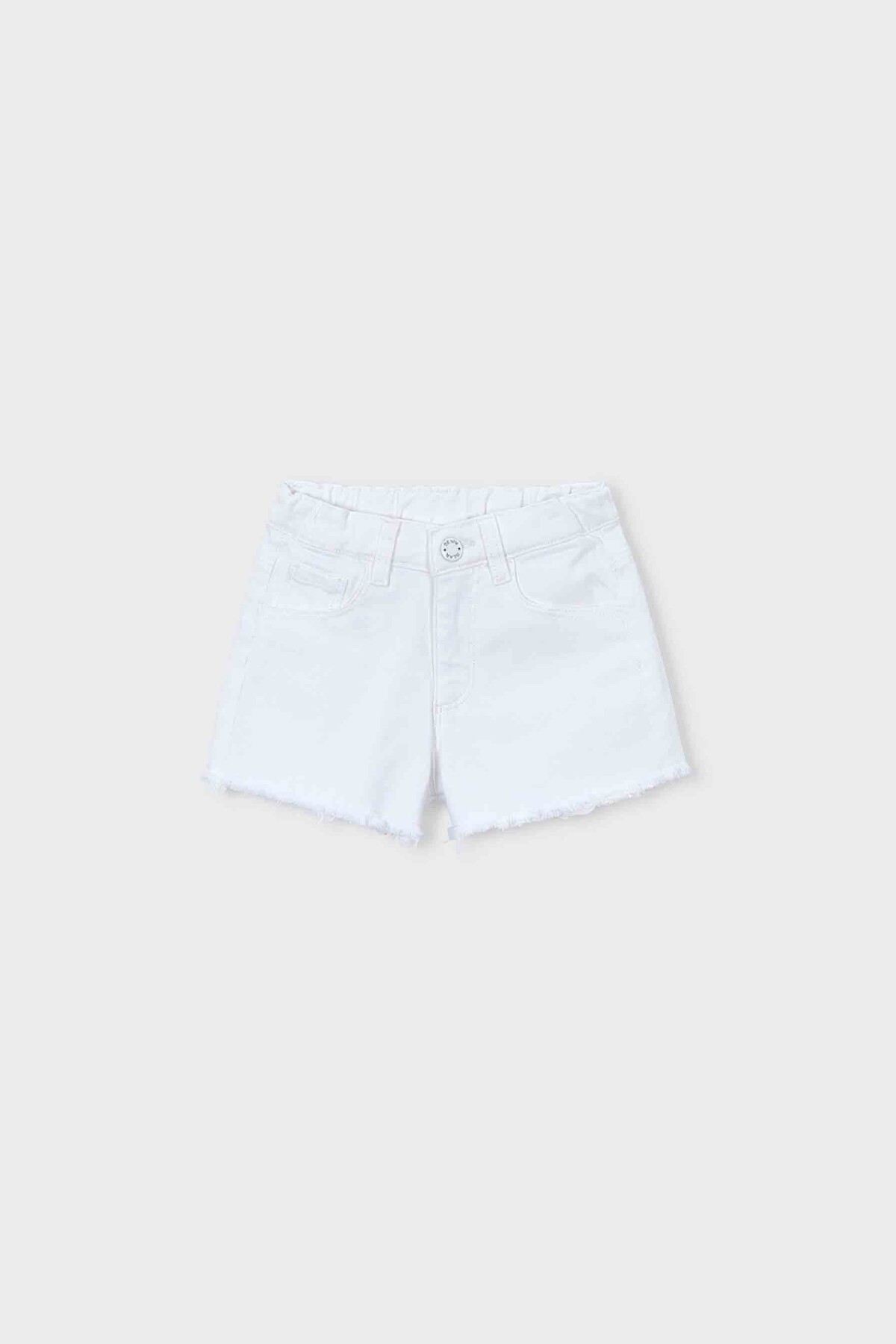 Mayoral koleksiyonuna ait bu temel denim şort, saf beyaz rengi ve konforlu yapısıyla kız çocuklarının yaz gardırobu için vazgeçilmez bir parça sunar. %97 pamuk ve %3 elastan karışımlı esnek kumaş yapısı, hareket özgürlüğünü kısıtlamadan gün boyu rahat bir kullanım sağlar.