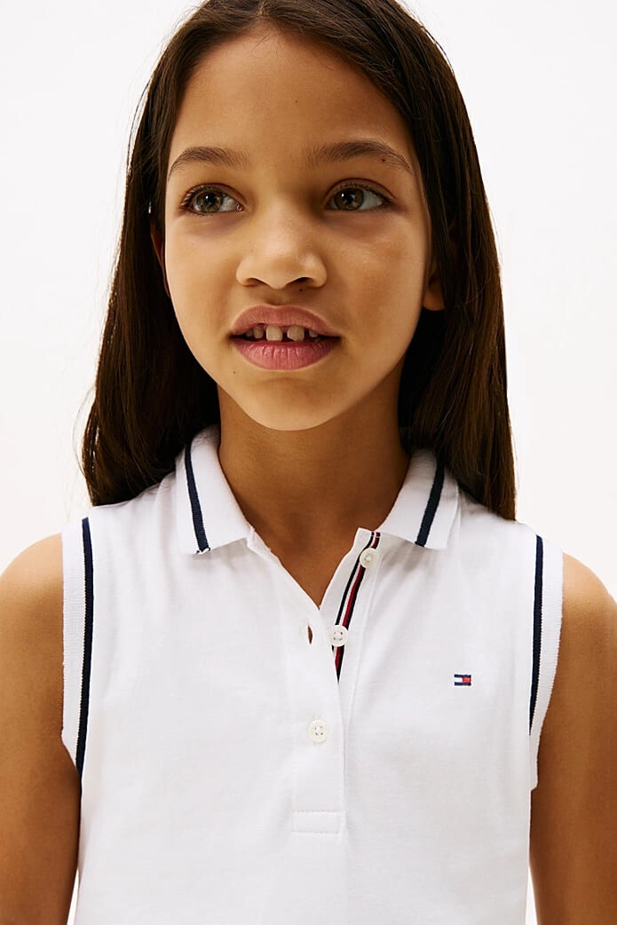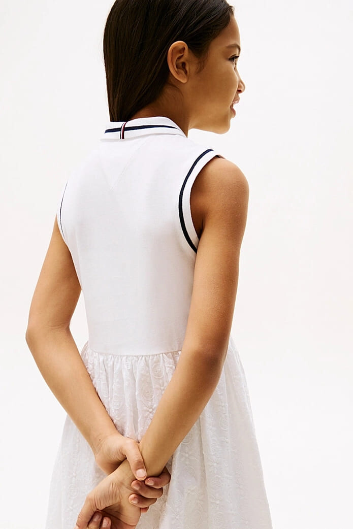 Kız Çocuk Th Broderie Anglaise Polo Elbise - Beyaz