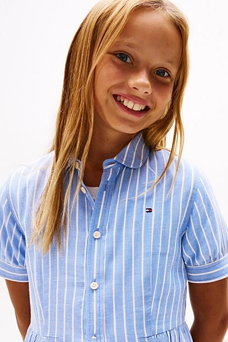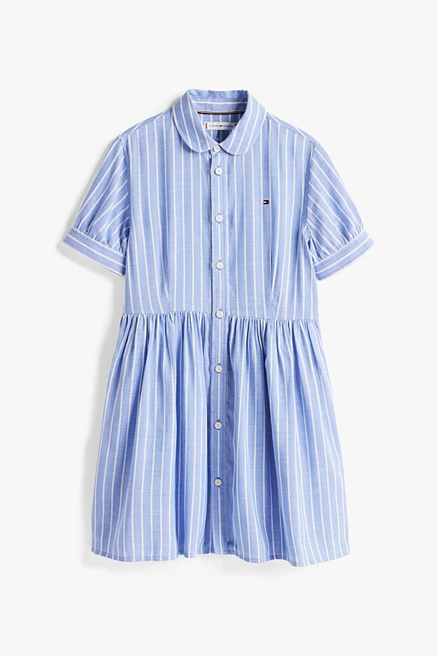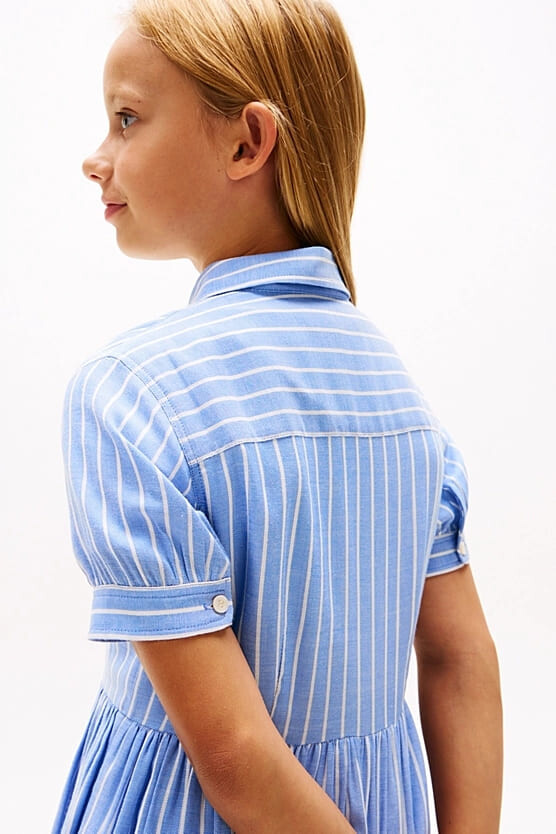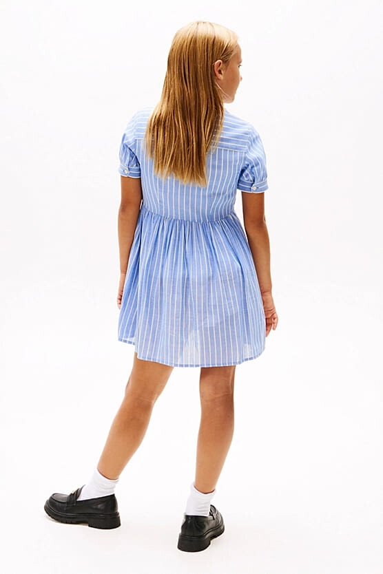 Kız Çocuk Th Çizgili Kısa Kollu Gömlek Elbise - Mavi