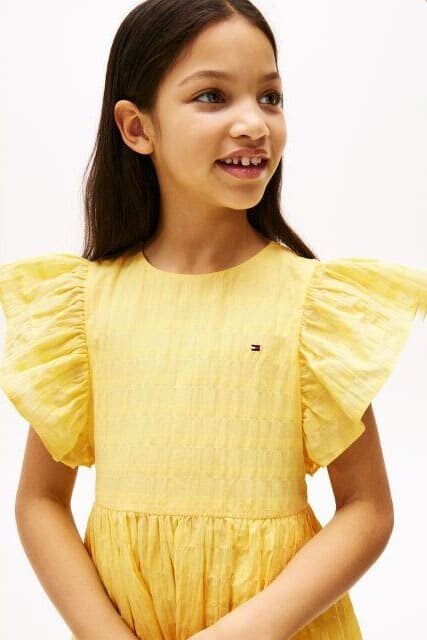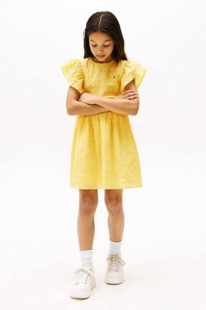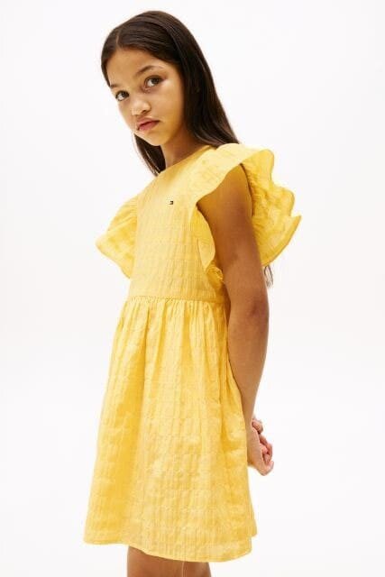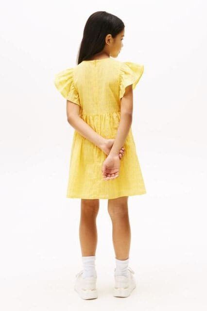 Kız Çocuk Th Dokulu Pamuklu Elbise - Sarı