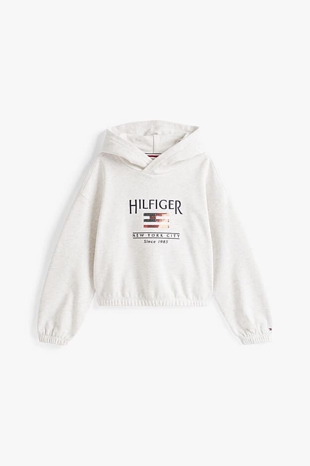 Kız Çocuk Th Sequin Bayrak Kapüşonlu Sweatshirt - Beyaz