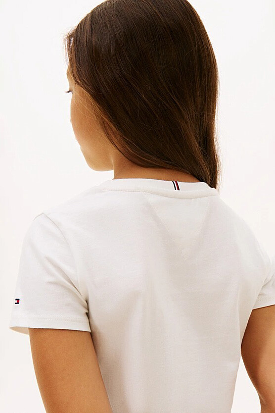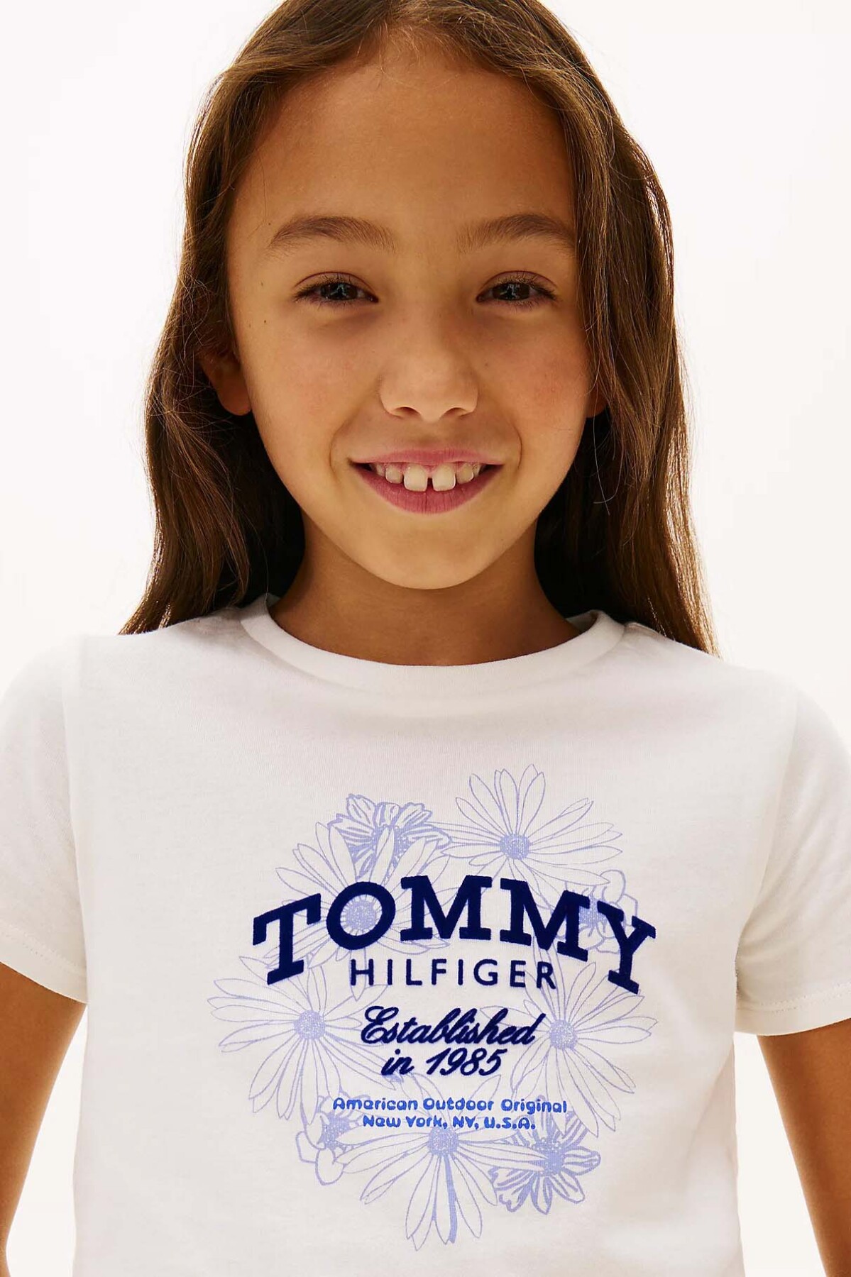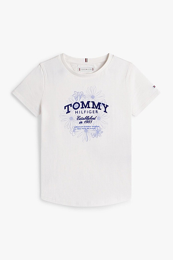 Zarif sadeliği neşeli detaylarla buluşturan Tommy Flock Flower T-Shirt, kırık beyaz tonuyla her kombine ferah bir hava katıyor. Göğüs kısmındaki daire formlu çiçek desenleri ve marka yazısı, lacivert ve mavi tonlarıyla beyaz zemin üzerinde şık bir kontrast oluştururken; flock baskı tekniği tasarıma dokunsal bir boyut kazandırıyor. %100 rejenere pamuktan üretilen doğal kumaşı, çocukların hassas cildine gün boyu nefes aldıran hafif ve yumuşak bir konfor sunuyor. Klasik bisiklet yaka kesimi ve rahat kalıbı sayesinde, hem oyun saatlerinde hem de hafta sonu gezmelerinde hareket özgürlüğünü kısıtlamayan ideal bir parça.