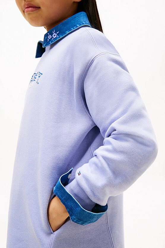 Oyun saatlerinin enerjisine ve okul günlerinin temposuna tek parça şıklığı ile ayak uyduran Tommy Puff Flower elbise, konforundan ödün vermeyen stil sahibi kızlar için tasarlandı. Yumuşak ve huzurlu lila tonu, göğüs kısmındaki çiçekli logo detayıyla birleşerek neşeli bir görünüm sunuyor. İçi şardonlu pamuk karışımlı kumaşı, serin havalarda onları bir battaniye gibi sıcak tutarken; sweatshirt stilindeki sportif ve rahat kesimi, gün boyu sınırsız hareket özgürlüğü tanıyor. Yanlarda bulunan pratik cepleri ve giy-çık kolaylığı sağlayan yapısıyla, gardırobun en sevilen kurtarıcı parçası olmaya aday.